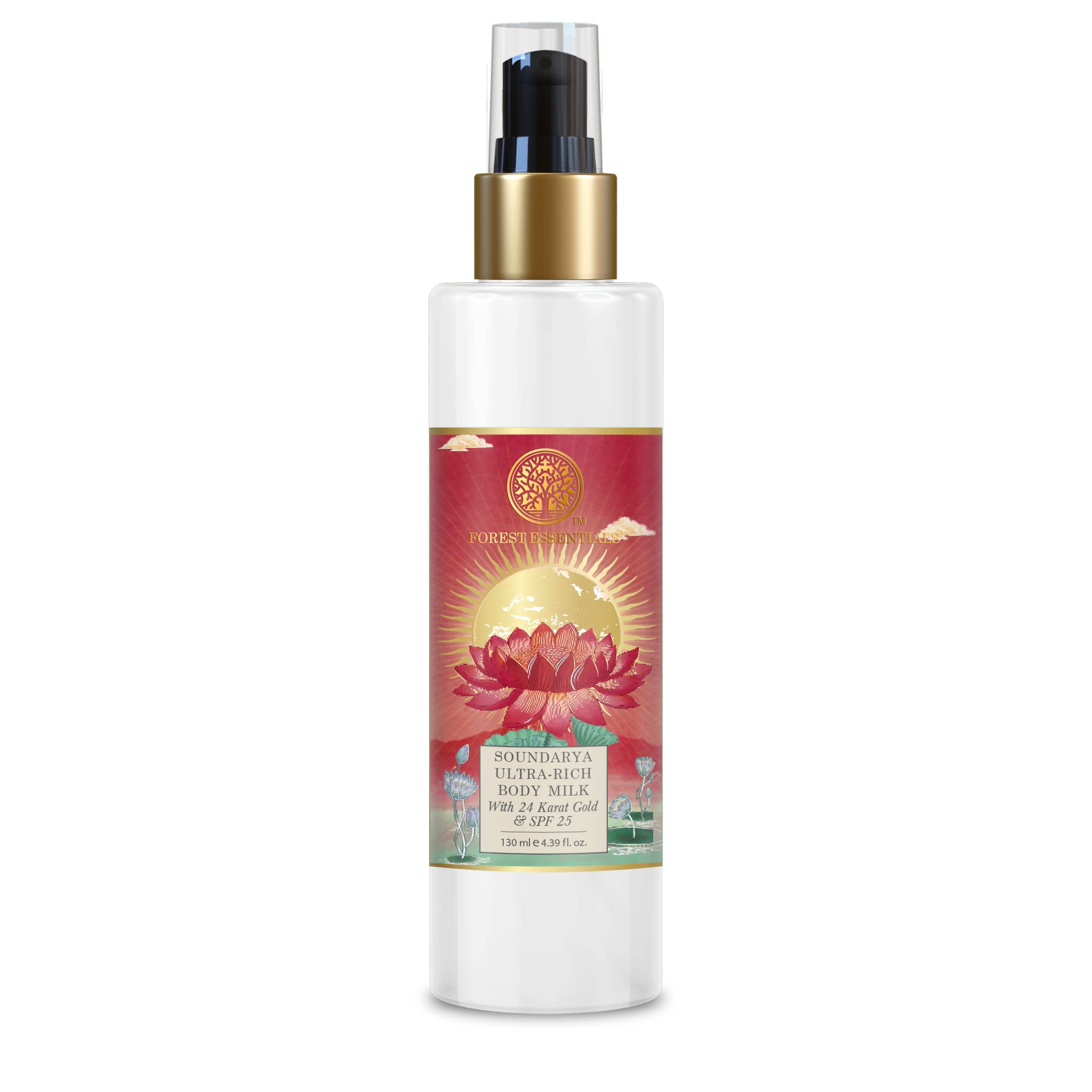 Forest Essentials Soundarya Ultra-Rich Body Milk With 24K Gold & SPF25 130ml (Body Lotion).