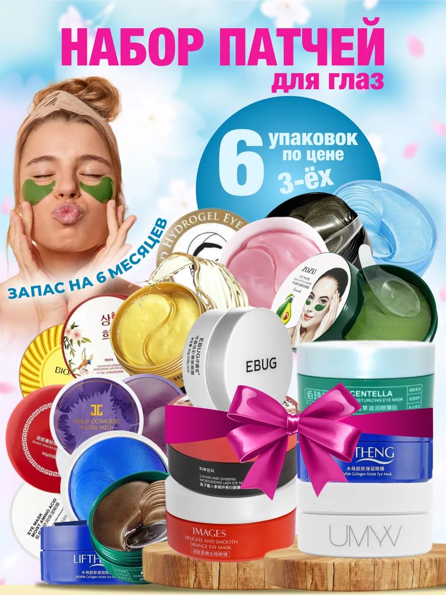 Патчи для глаз от отеков и мешков антивозрастные набор 6 шт