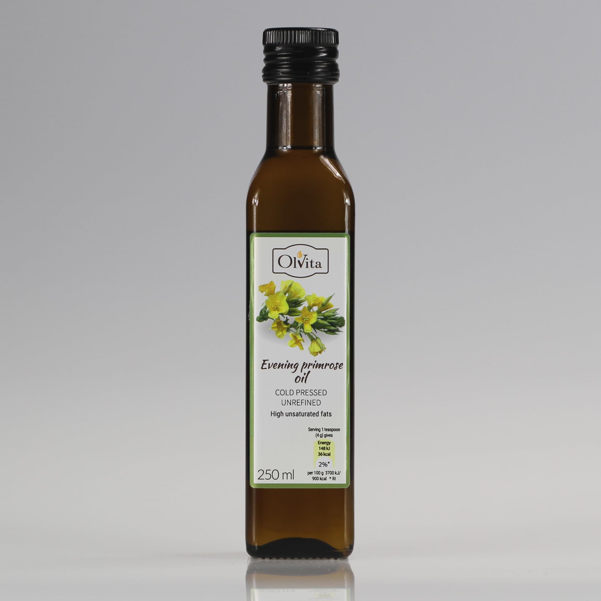 Evening primrose oil, cold pressed, raw 250ml OLVITA It is made from the seeds of the evening primrose. Contains GLA - gamma-linolenic acid. Composition: Evening primrose oil is a rich source of GLA, containing about 9 of it and also about 70 of linoleic acid. Usage: Consuming evening primrose oil reduces the amount of sebum and blackheads produced on the skin. The effects of the oil in question are visible after long-term use and a specific dosage (according to Dr. Rózanski) of at least 1.5 g per day. In cosmetics, this oil is also a natural ingredient added to creams to improve skin elasticity. It can also be used directly on the skin. INGREDIENTS 100 cold-pressed evening primrose oil, unrefined INSTRUCTIONS FOR USE Use at least 1.5g per day and can be used directly on the skin. See moreTeunisbloemolie, koudgeperst, ruw 250ml OLVITA Teunisbloemolie, koudgeperst, ruw 250ml OLVITA Het is gemaakt van de zaden van de teunisbloem. Bevat GLA - gamma-linoleenzuur. Compositie: Teunisbloemolie is een rijke bron van GLA, het bevat ongeveer 9 ervan en ook ongeveer 70 linolzuur. Gebruik: Het consumeren van teunisbloemolie vermindert de hoeveelheid talg en mee-eters die op de huid worden geproduceerd. De effecten van de betreffende olie zijn zichtbaar na langdurig gebruik en een specifieke dosering (volgens Dr. Rózanski) van minimaal 1,5 g per dag. In cosmetica is deze olie ook een natuurlijk ingrediënt dat aan crèmes wordt toegevoegd om de elasticiteit van de huid te verbeteren. Het kan ook direct op de huid worden gebruikt. INGREDIËNTEN 100 koudgeperste teunisbloemolie, ongeraffineerd GEBRUIKSAANWIJZING Gebruik minimaal 1,5g per dag en kan direct op de huid worden gebruikt. Meer bekijken
