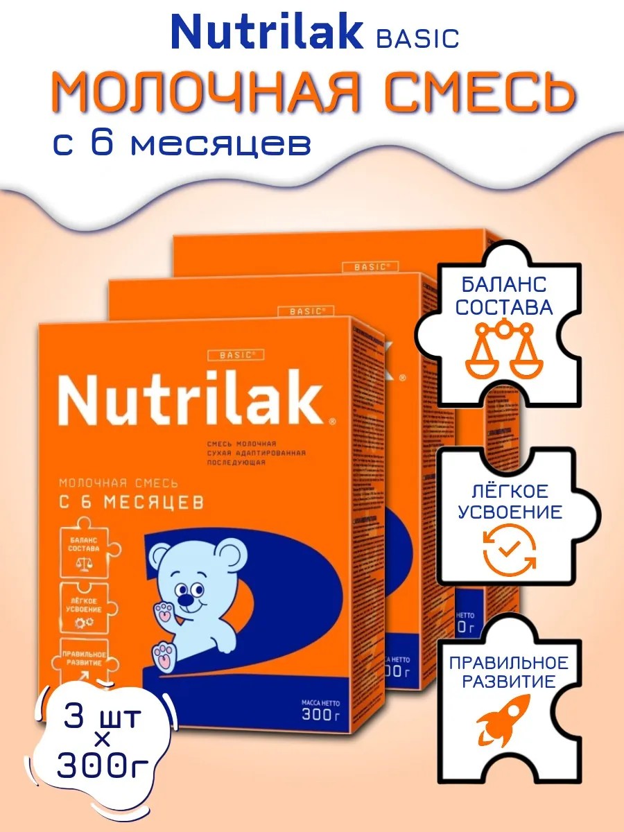 Заменитель грудного молока Нутрилак 2 от 6+ мес 300 г х 3 шт