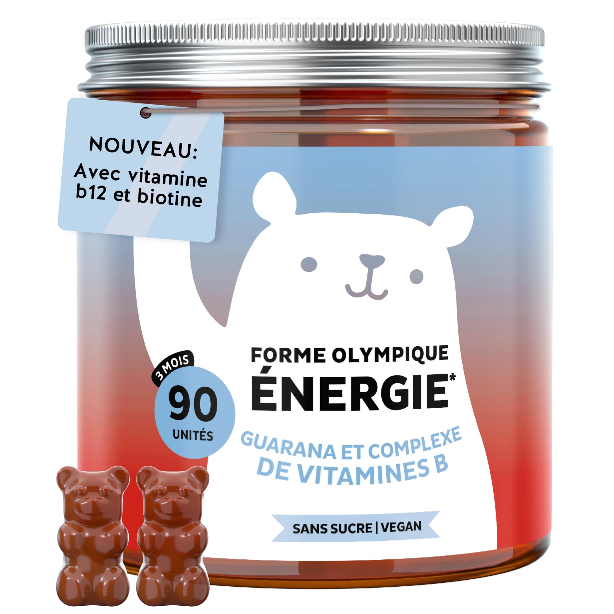 Forme Olympique nergie nergie Naturelle avec Guarana 30mg Vitamines B6 B12 & Biotine 90 Gummies (3 Mois) Sans Sucres V gan Bears with Benefits 90 gummies - 3 mois