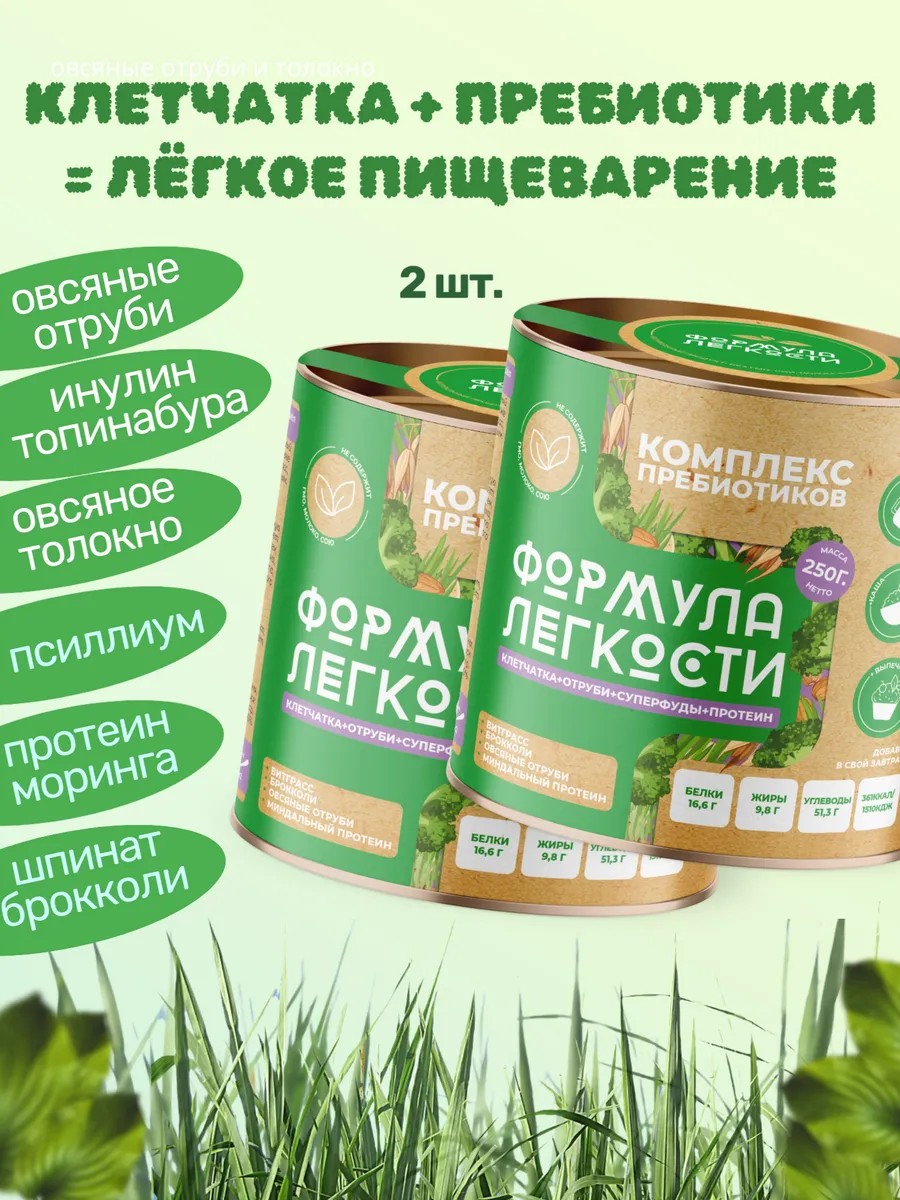 Формула Легкости Пребиотики, микс семян и зелени, протеин и моринга 2*250 гр