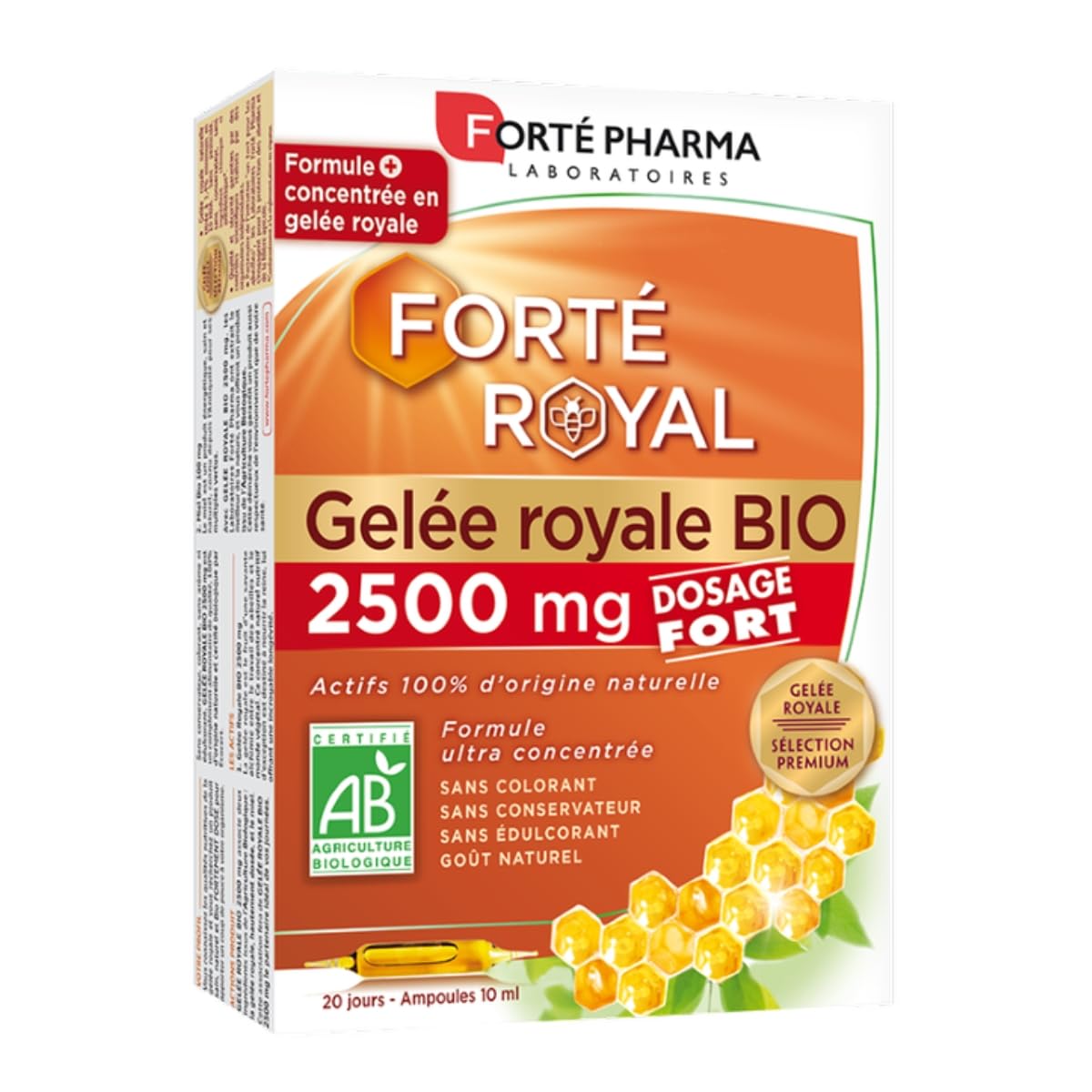 Forté Pharma - Gelée Royale Bio 2500 mg Complément Alimentaire Immunité et Défenses - ultra concentrée, Miel Fatigue, Système immunitaire 20 ampoules