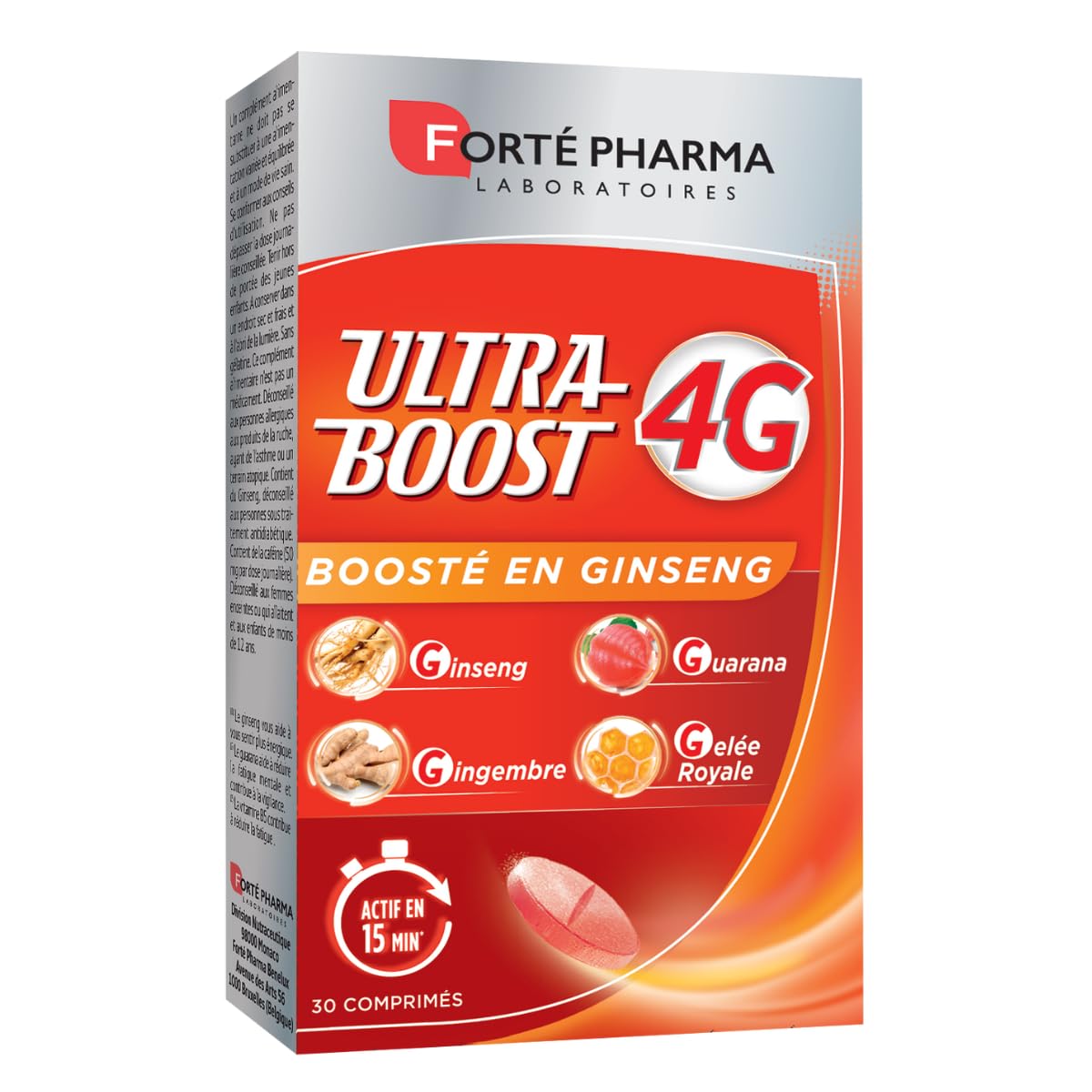 Forté Pharma - Ultra Boost 4G Booster d'Energie - Anti-Fatigue Giseng - Guarana - Gelée Royale - Gingembre Complément Alimentaire à base de Caféine et Acérola 30 comprimés Ultra Boost 4G Comprimés 30 comprimés