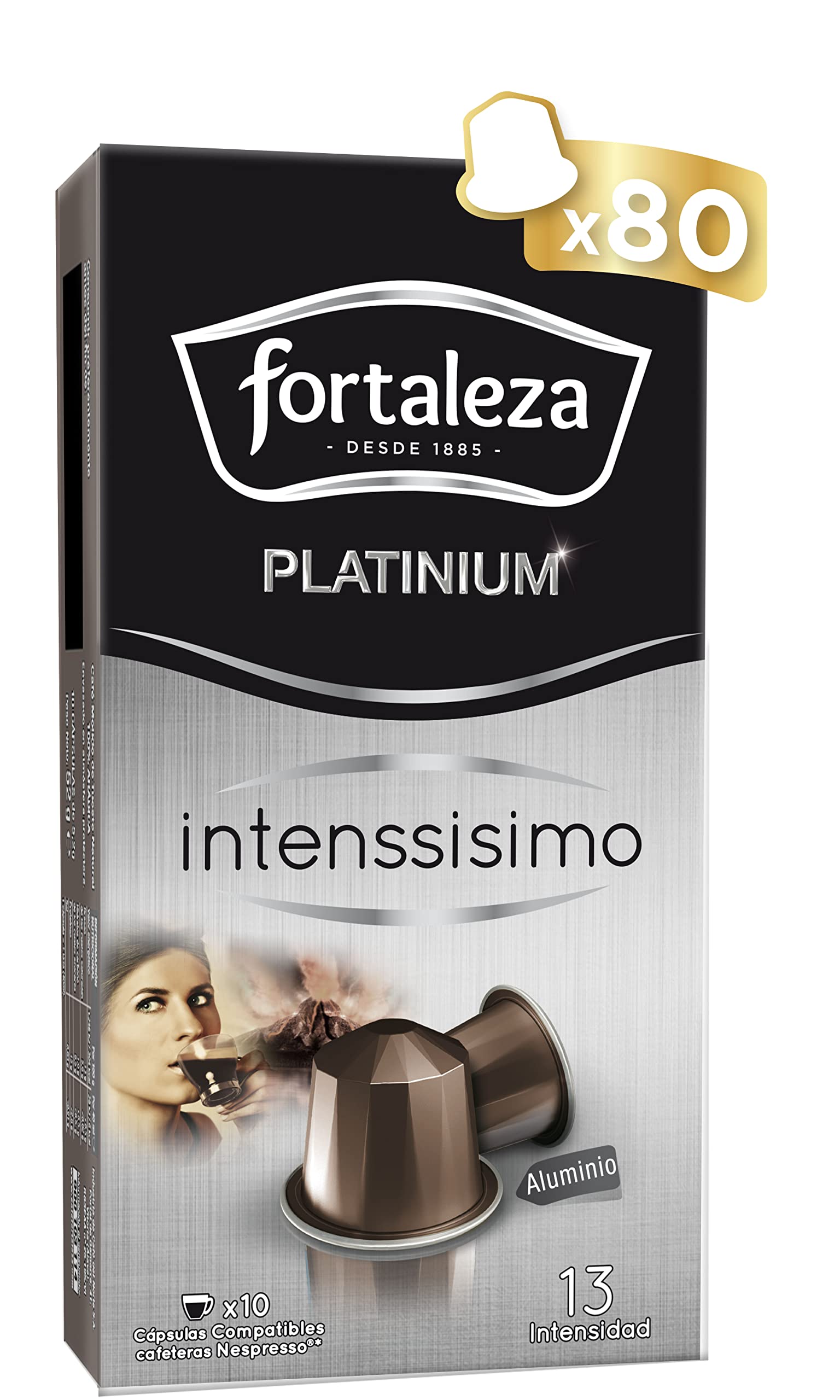 Fortaleza Coffee Fortaleza Platinum - Compatible Nespresso Capsules in Aluminium Sabor Intenssisime Special Coffee Espresso 100% Arabic Pack of 8 x 10 - Total 80 Units