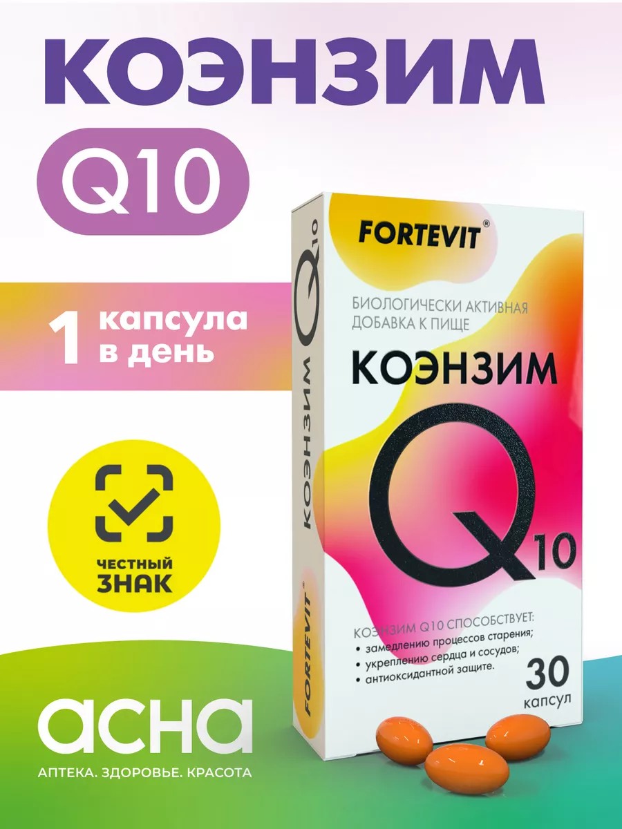 Витамины для взрослых, БАД Фортевит Про Коэнзим Q10 с действующим веществом коэнзим Q10 (Убихинон) – 30 мг -рекомендуется помощи организму в энергетических процессах, для улучшения работы мозга, при нагрузках на работе. Комплекс витаминов для иммунитета может применяться при повышенных физических и умственных нагрузках. БАД для повышения иммунитета имеет в своём составе основной компонент - Коэнзим Q10. Коэнзим Q10 контролирует поток кислорода внутри отдельных клеток, ускоряет кровообращение, стимулирует работу иммунной системы, способствует улучшению метаболизма сердечной мышцы и понижает кровяное давление.