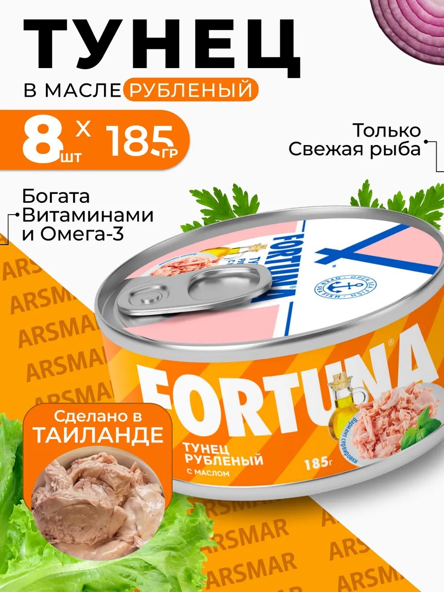 Fortuna Тунец в масле натуральный рубленый 8шт по 185г
