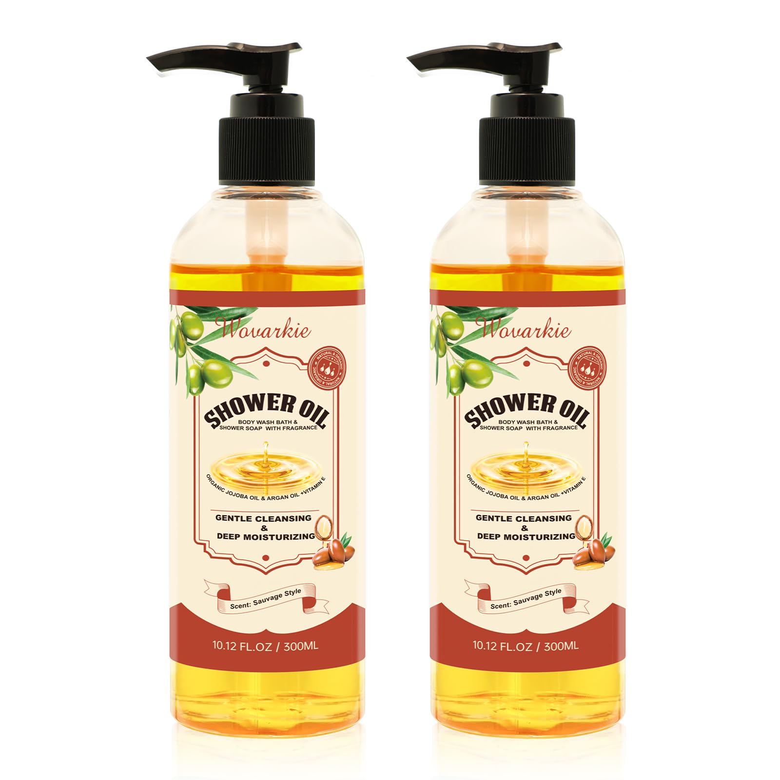 forvirgeen 2 Pack Shower Oil with Organic Argan - Moisturizing Body Wash for Women Natural & Vegan for Sensitive Skin - Deep Hydration & Silky Smooth Feel (Sauvage Style)