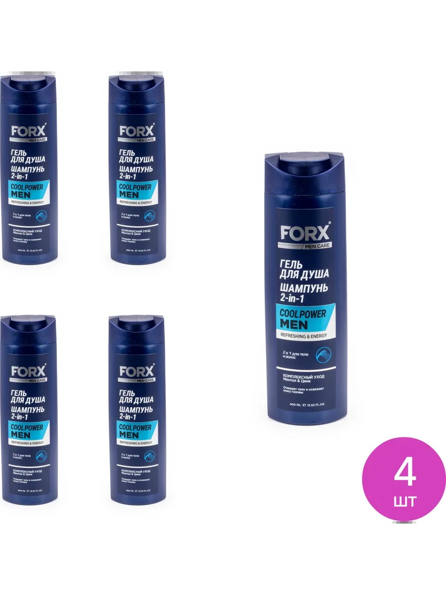 FORX MEN CARE Cool Power Гель для душа и шампунь мужской 2 в 1 400мл, 4 шт