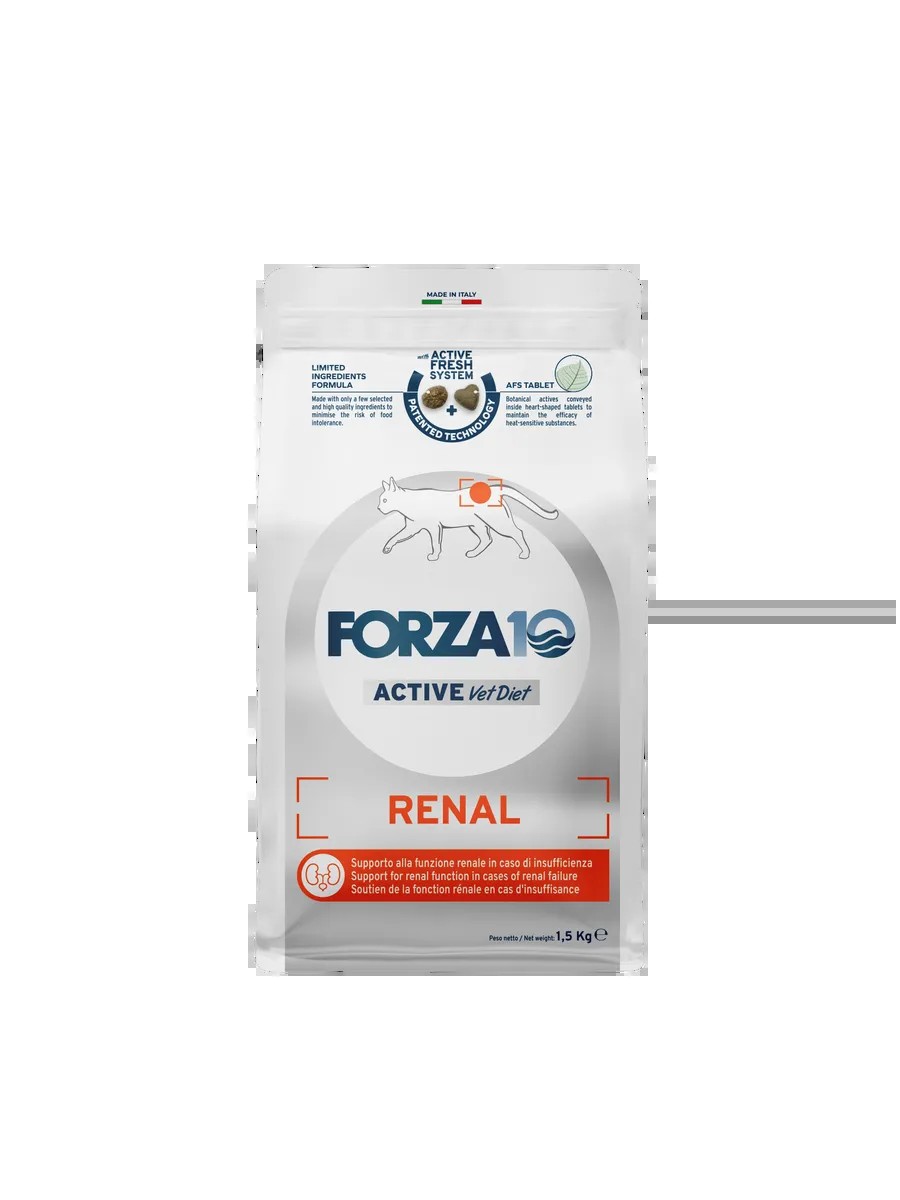 Forza10 RENAL ACTIVE - это диетический, полнорационный корм, разработанный научно-исследовательским отделом компании SANYpet, для взрослых кошек с острыми и хроническими заболеваниями почек.