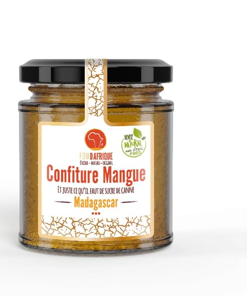 Madagascar Mango Jam! They make this delicious jam from the juiciest and most fragrant mangoes of the Big Island, creating a tropical treasure that will brighten your mornings in an unforgettable way. Madagascar Mango Jam is a true explosion of exotic flavors. When you open the jar, you will instantly smell the sweet and captivating aroma of ripe mangoes, transporting you to the sunny beaches of Madagascar. The sun-drenched pieces of mango blend generously with a sweet and slightly tangy base to create a smooth texture. Madagascar Mango Jam is a festival of colors and flavors that brightens up your breakfast toast. It can also enhance your desserts, yogurts, and serve as a topping for your baked goods. Madagascar mangoes are rich in vitamins and antioxidants, offering a touch of healthy exoticism to your diet. Their natural sweetness is enhanced in this jam, making it a delicious choice for those who want to combine pleasure and well-being. Succumb to the sun-drenched charm of Madagascar mango jam and let yourself be carried away by the exotic taste of the Indian Ocean with every bite. It's a true delight for the taste buds that will transport you to the heart of Madagascar's bountiful nature. INGREDIENTS Organic Mango Pulp (68 )