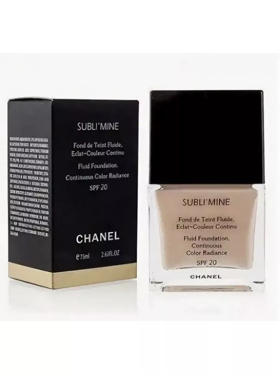 CHANEL Sublimine тональный флюид Шанель сочетает в себе перламутровые частицы для выравления цвета лица. Благодаря этому продукту при любом освещении и в любое время суток лицо выглядит идеально. В составе есть компонент SPF 20 для мощной защиты кожи. Нежная, тающая на коже увлажняющая эмульсия легко ложиться на кожу, покрывая ее мягкой вуалью, которая обеспечивает комфорт и защиту. Текстура крема настолько легкая, что его можно наносить с закрытыми глазами, при этом полностью исключена вероятность неровного тона. Более того, флюид отличается прекрасными "маскирующими" свойствами, замечательно скрывает нюансы (пигментные пятна, купероз, синячки) и небольшие морщинки. Консистенция приятная, нежная, распределяется оно хорошо, впитывается и увлажняет отлично, делая цвет лица очень ровным с аристократической мраморностью.Лицо после нанесения хорошо увлажнено, крем не забивает поры, это не маловажно! Эффекта видимости тонального крема на коже нет.