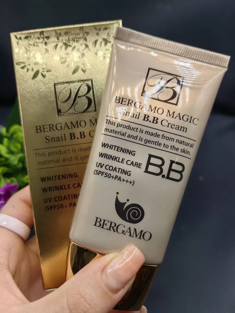 BB крем для лица Bergamo Magic Snail BB Cream SPF 50 PA+++ бб крем тройного действия с улиточным фильтратом. Выравнивает тон кожи, маскирует недостатки, сужает поры, придает лицу матовый ровный "фарфоровый" оттенок. Омолаживает, восстанавливает, убирает морщинки, питает и увлажняет кожу. Защита от солнечных лучей SPF 50+. ВВ крем помимо косметического, имеет еще и уходовое действие благодаря входящему в состав фильтрату слизи улиток. На человеческую кожу фильтрат слизи действует следующим образом: восстанавливает, придает эластичность и прочность, увлажняет, снимает кожные воспаления, заживляет следы от акне.