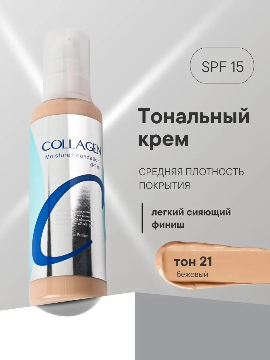 Тональный крем корейский Collagen spf15 помогает скрыть несовершенства. Крем с spf для лица обладает легким покрытием, не сушит кожу и придает лицу здоровое сияние. Коллаген улучшает общее состояние кожи, делает ее упругой и эластичной, убирает мелкие морщинки. Экстракт центеллы азиатской обладает противовоспалительным действием, уменьшает отеки. Тональное средство имеет цветочный аромат, который исчезает спустя 30 минут после нанесения. Два тона: №13, №21.Способ применения: необходимое количество крема нанести на хорошо увлаженную кожу. Благодаря этому крем ложится ровным слоем и не забивает поры.