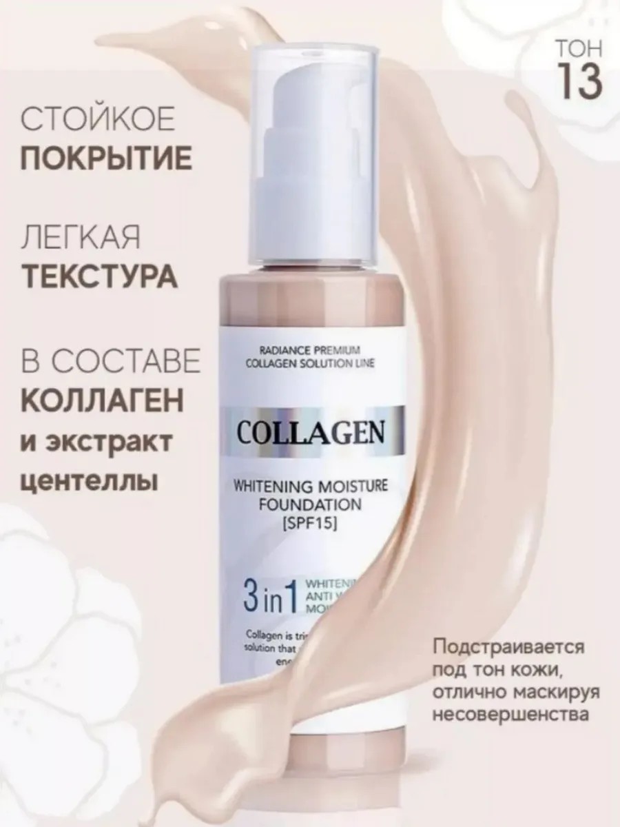 Омолаживающий тональный крем №13 с spf для лица 15 (солнцезащитный крем от загара) обладает легким покрытием, не сушит кожу и придает сияние. Действие 3в1: отбеливающий крем, крем от морщин, солнцезащитный. Тональный крем для лица помогает скрыть несовершенства (постакне, покраснения от прыщей). Корейский крем для лица увлажняющий содержит: коллаген для лица -удерживает влагу, разглаживает морщинки. Гиалуроновая кислота для лица глубоко увлажняет, придает упругость и эластичность. Необходимо наносить тональник на хорошо увлаженную кожу, чтобы крем тональный для лица ложился тонким ровным слоем.