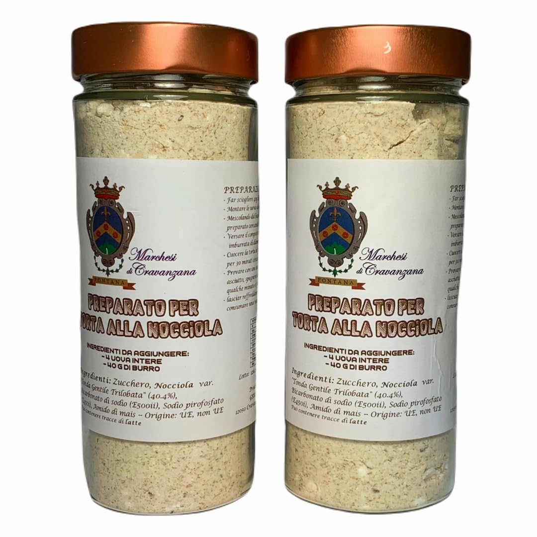INGREDIENTS TO ADD: - 4 WHOLE EGGS - 40 g Butter Ingredients: Sugar, Hazelnut var. "Tonda Gentile Trilobata" (40.4 ), Sodium Bicarbonate (E500ii), Sodium Pyrophosphate (E450i), Corn Starch -- Origin: EU, non-EU May contain traces of milk INGREDIENTS Ingredients: Sugar, Hazelnut var. "Tonda Gentile Trilobata" (40.4 ), Sodium Bicarbonate (E500ii), Sodium Pyrophosphate (E450i), Corn Starch -- Origin: EU, non-EU May contain traces of milk2 pak bereid voor "marchesi di cravanzana" hazelnootcake - 2x400g INGREDIËNTEN TOE TE VOEGEN: - 4 HELE EIEREN - 40 g Boter Ingrediënten: Suiker, Hazelnoot var. "Tonda Gentile Trilobata" (40,4 ), Natriumbicarbonaat (E500ii), Natriumpyrofosfaat (E450i), Maïszetmeel -- Herkomst: EU, niet-EU Kan sporen van melk bevatten INGREDIËNTEN Ingrediënten: Suiker, Hazelnoot var. "Tonda Gentile Trilobata" (40,4 ), Natriumbicarbonaat (E500ii), Natriumpyrofosfaat (E450i), Maïszetmeel -- Herkomst: EU, niet-EU Kan sporen van melk bevatten