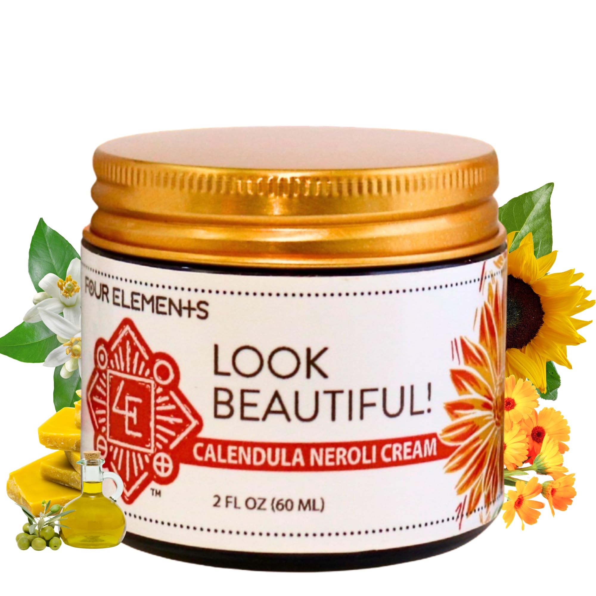 Four Elements 4E Calendula Neroli Cream 2 Oz | Organic Face Moisturizing Cream with Shea Butter & Essential Oils | Hydrating Skin care for Soft Smooth Skin | Self-Care Gifts for Women