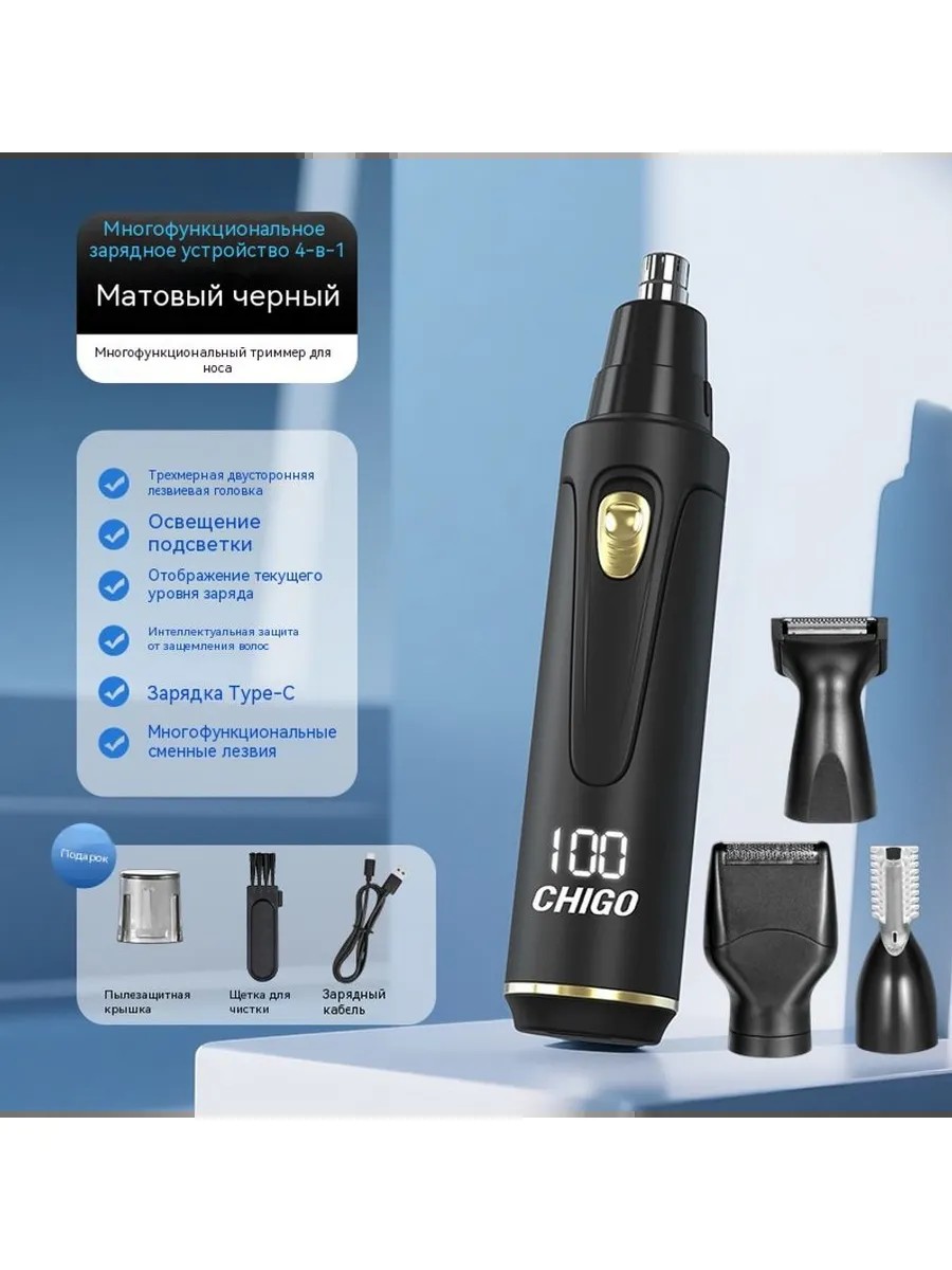 Chigo Электрический триммер для волос носа многофункциональный обрезка четыре в одном