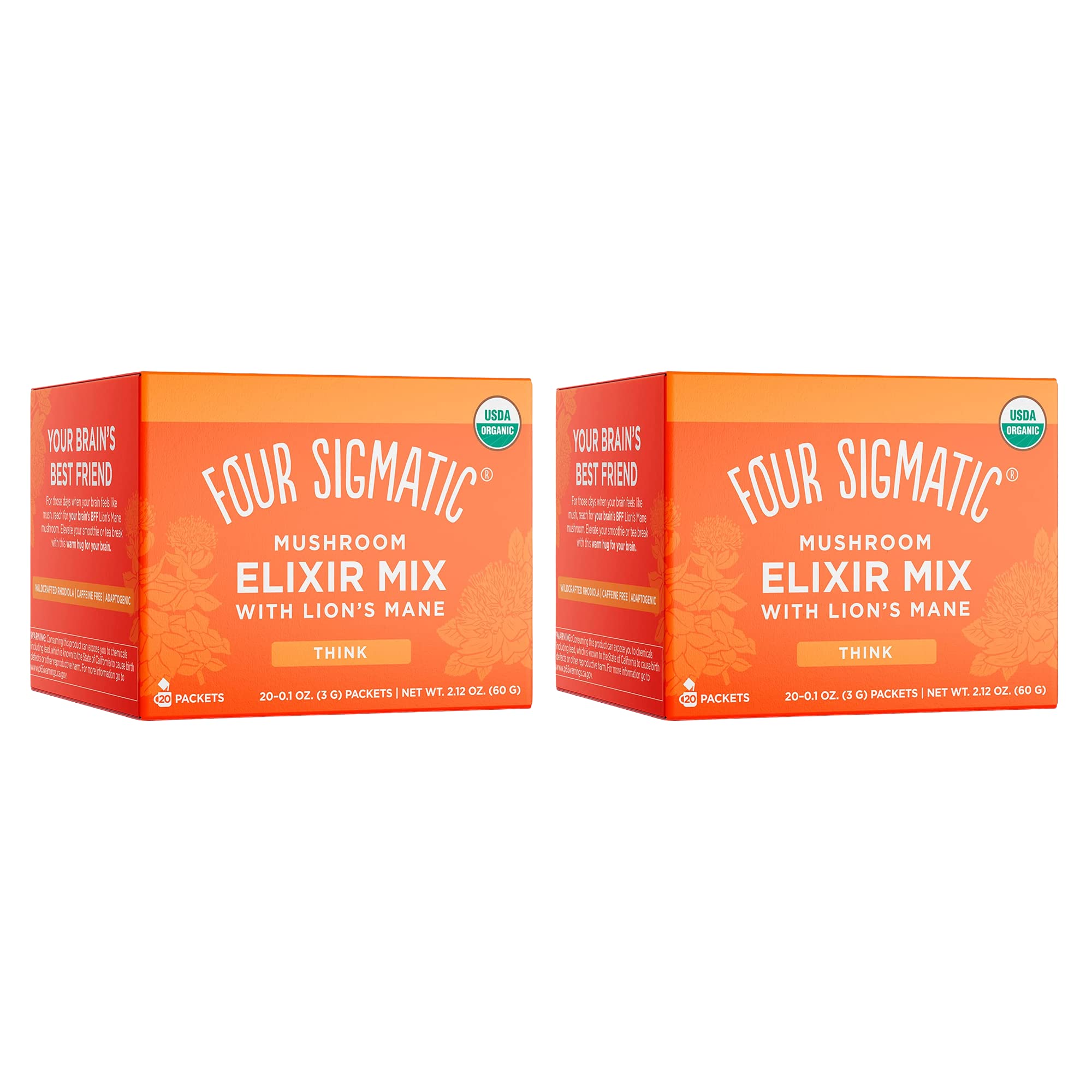 Like a hug for your brain, sip Lion's Mane elixir while studying for mid-terms, approaching a work deadline, or really focusing on making that hand-carved dining table. This elixir tastes nothing like culinary mushrooms. Instead, rose hips, mint, and a touch of stevia make a delicious tea. Ingredients Organic Lion's Mane Mushroom (1,500 mg), Organic Rose Hips (300 mg), Organic Rhodiola (200 mg per serving), Organic Mint, Organic Stevia (50 mg) Directions Mix the powder in sachet with a cup of warm water Box Contains each order Comes with a box of 20 sachets of 3g 20 Napkins INGREDIENTS Organic Lion's Mane Mushroom (1,500 mg), Organic Rose Hips (300 mg), Organic Rhodiola (200 mg per serving), Organic Mint, Organic Stevia (50 mg)This product comes as a PACK OF 2. Each Instant Lion's Mane sachet contains 1500 mg of strong lion's mane extract. Vegan, Sugar Free, All Natural. Lion's Mane is a completely natural brain booster, a nootropic, with no side effects. It has been shown to improve memory. Mushroom dual extract and spice mix powder.Four Sigma Foods Lion's Mane Paddestoel Elixir Mix met zoete kruiden, 60 g, 20 zakjes, (Pack van 2) Productomschrijving Als een knuffel voor je hersenen, nip Lion's Mane-elixer tijdens het studeren voor middellange termijnen, nadert een werkdeadline, of concentreert u zich echt op het maken van die met de hand gesneden eettafel. Dit elixer smaakt niets naar culinaire paddenstoelen. In plaats daarvan, rozenbottels, munt, en een vleugje stevia maken van een heerlijke thee. Ingrediënten Biologische Leeuwenmanen Paddestoel (1.500 mg), Biologische Rozenbottels (300 mg), Biologische Rhodiola (200 mg per portie), Biologische Munt, Biologische Stevia (50mg) Route Meng het poeder in zakje met een kopje warm water Doos Bevat elke bestelling Wordt geleverd met een doos van 20 zakjes van 3g 20 Servet ings INGREDIËNTEN Biologische Leeuw Manen Champignon (1.500 mg), Organische Rozenbottels (300 mg), Organische Rhodiola (200 mg per portie), Organische Mint, Biologische Stevia (50mg)Dit product wordt geleverd als PACK VAN 2. Elk Instant Lion's Mane zakje bevat 1500 mg sterke leeuwenmanen extract. Veganistisch, Suikervrij, Alle Natuurlijke. Lion's Mane is een volledig natuurlijke hersenversterker, een nootropic, zonder bijwerkingen. Het is aangetoond dat het geheugen verbetert. Champignon dual extract en kruidenmix poeder.