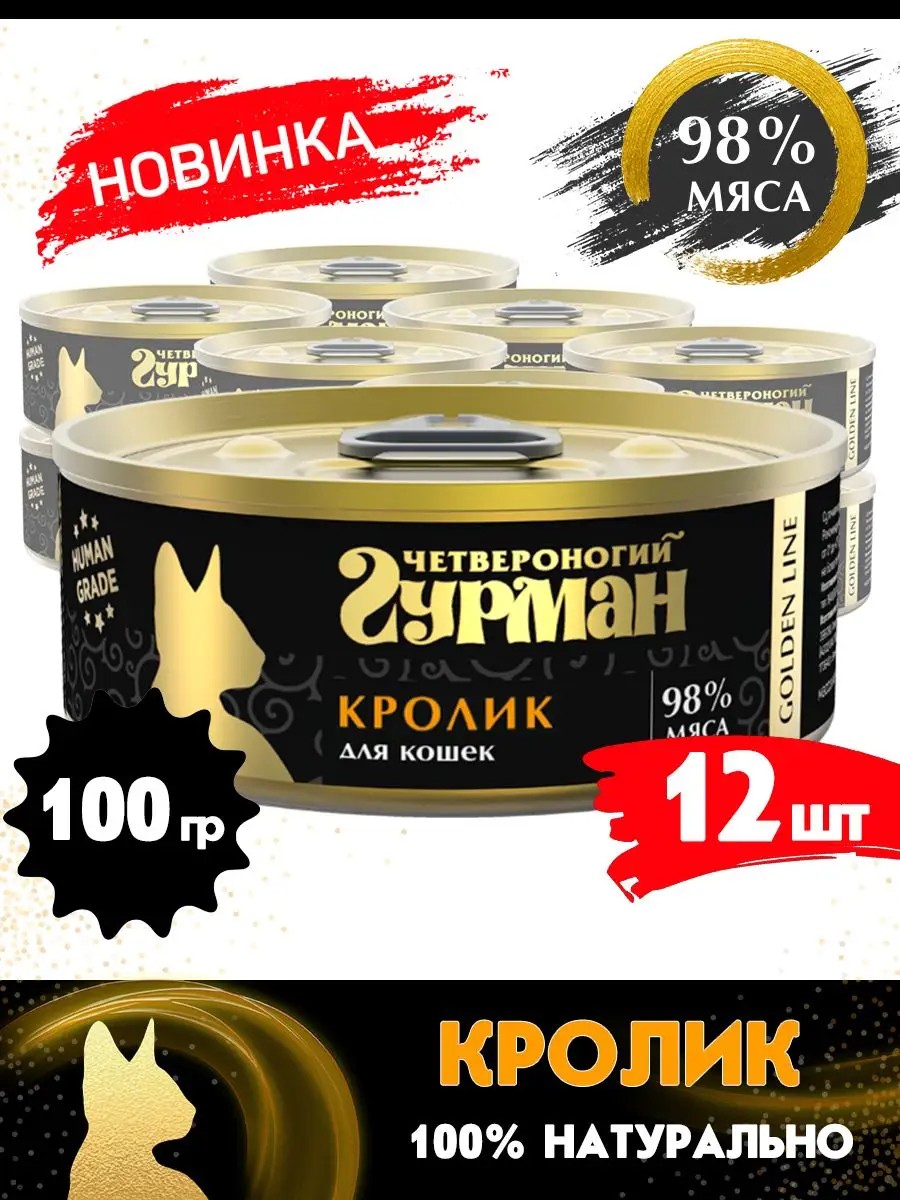 Четвероногий Гурман Корм для кошек влажный Golden line Кролик 100 г 12 шт