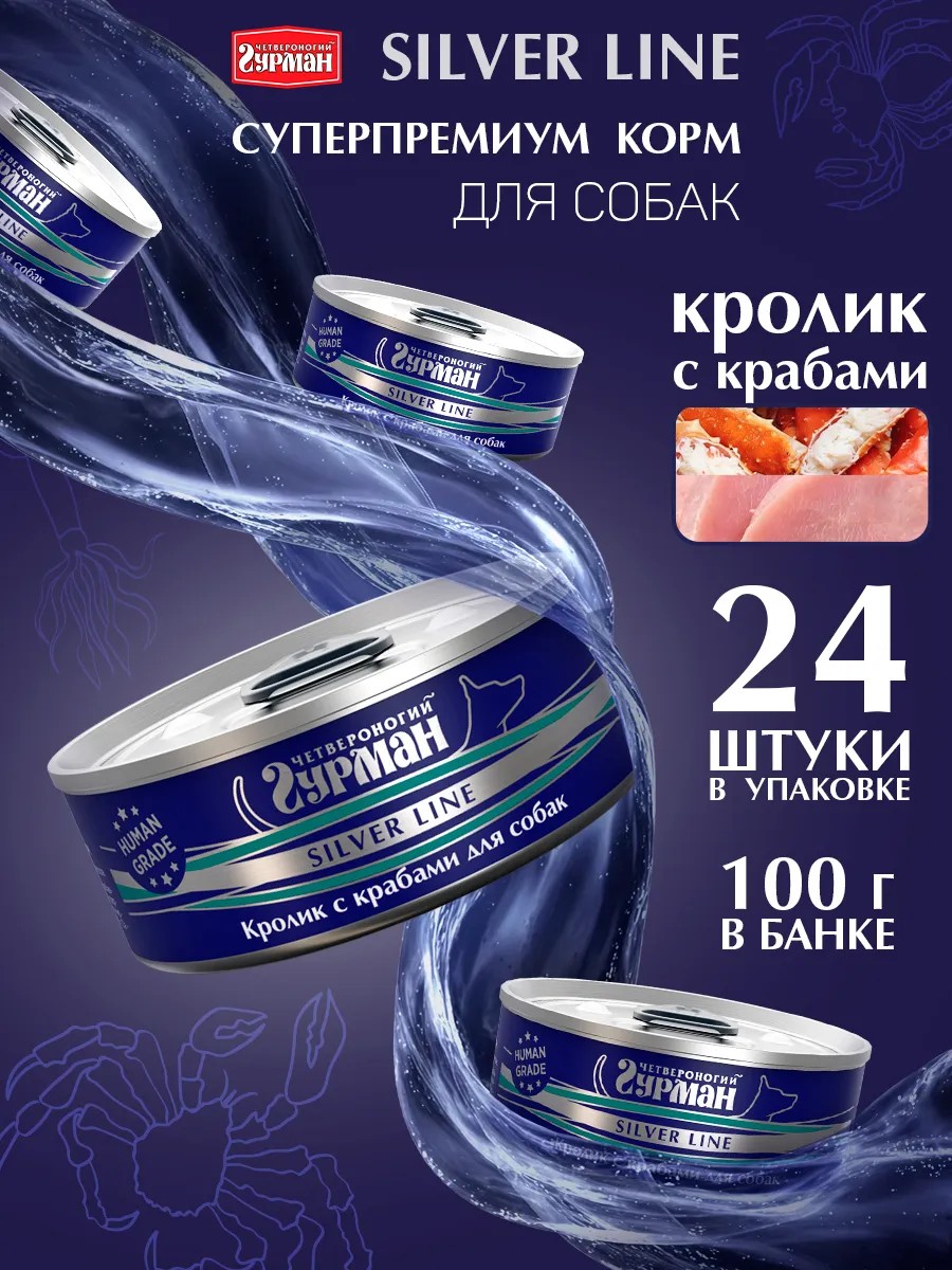 Четвероногий Гурман Корм для собак влажный кролик с крабами 100 г 24 шт