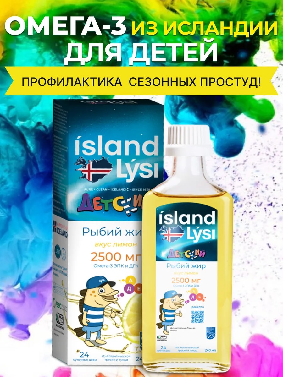 Lysi Omega-3 детский рыбий жир в жидкой форме с приятным лимонным вкусом от исландского производителя рыбьего жира. Особая, не имеющая аналогов формула! Смешиваются два вида рыбий жир из печени североатлантической трески и жир тунца для получения максимальной концентрации DHA. Содержит витамины А, D и Е, а также Омега-3 жирные кислоты, одна из которых - ДГК играет важную роль в развитии мозга и центральной нервной системы. Витамины А и D необходимы для нормального развития зубов, костей и зрения.