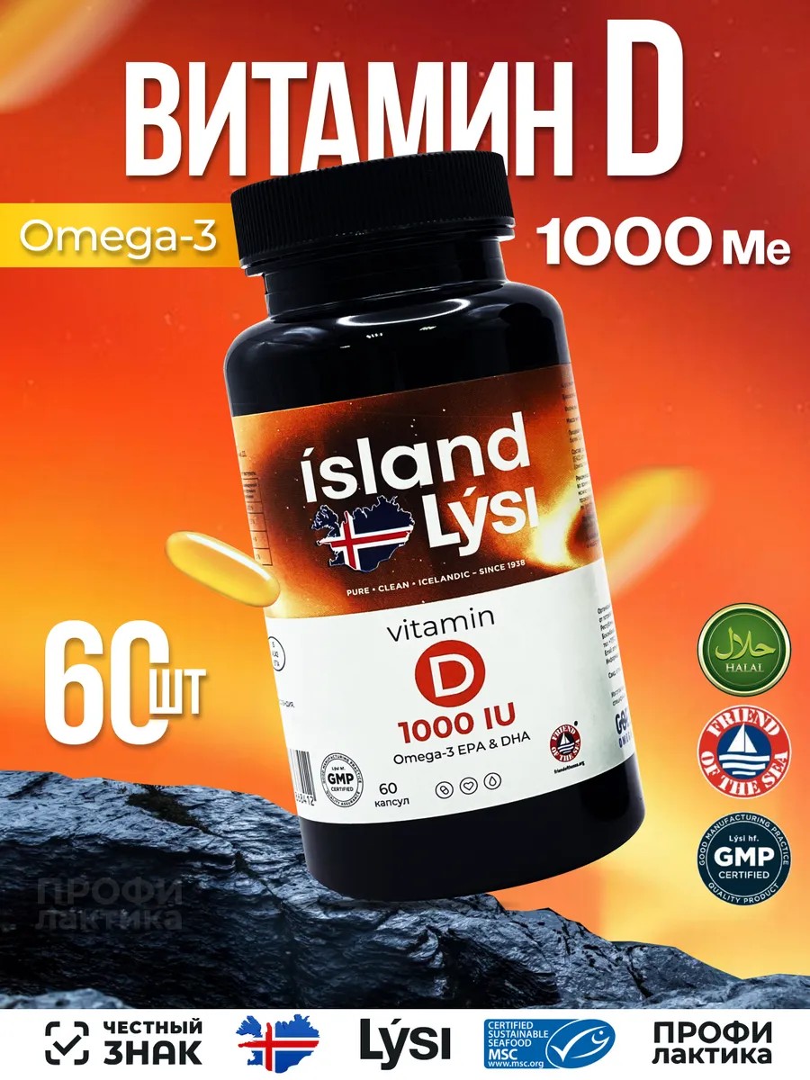 Лиси Lysi витамин D 1000 ME Омега-3 капсулы 60 шт.
