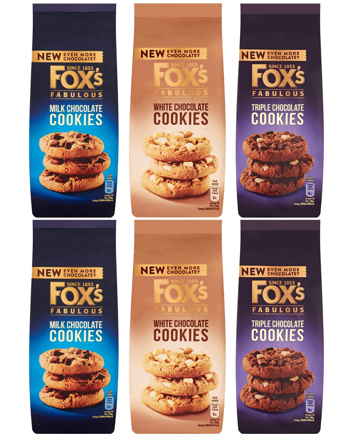Fox's Fabulous Chunky Cookies 6 x 180 g – Chocolat au lait, chocolat blanc, triple chocolat