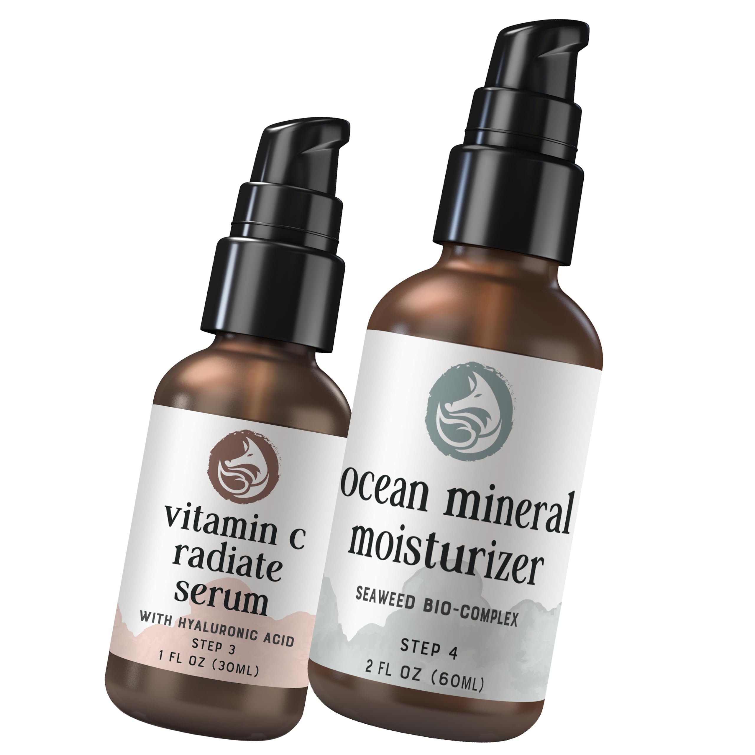 Foxbrim Naturals Radiant Skincare Pair: Vitamin C Face Serum & Ocean Mineral Moisturizer
