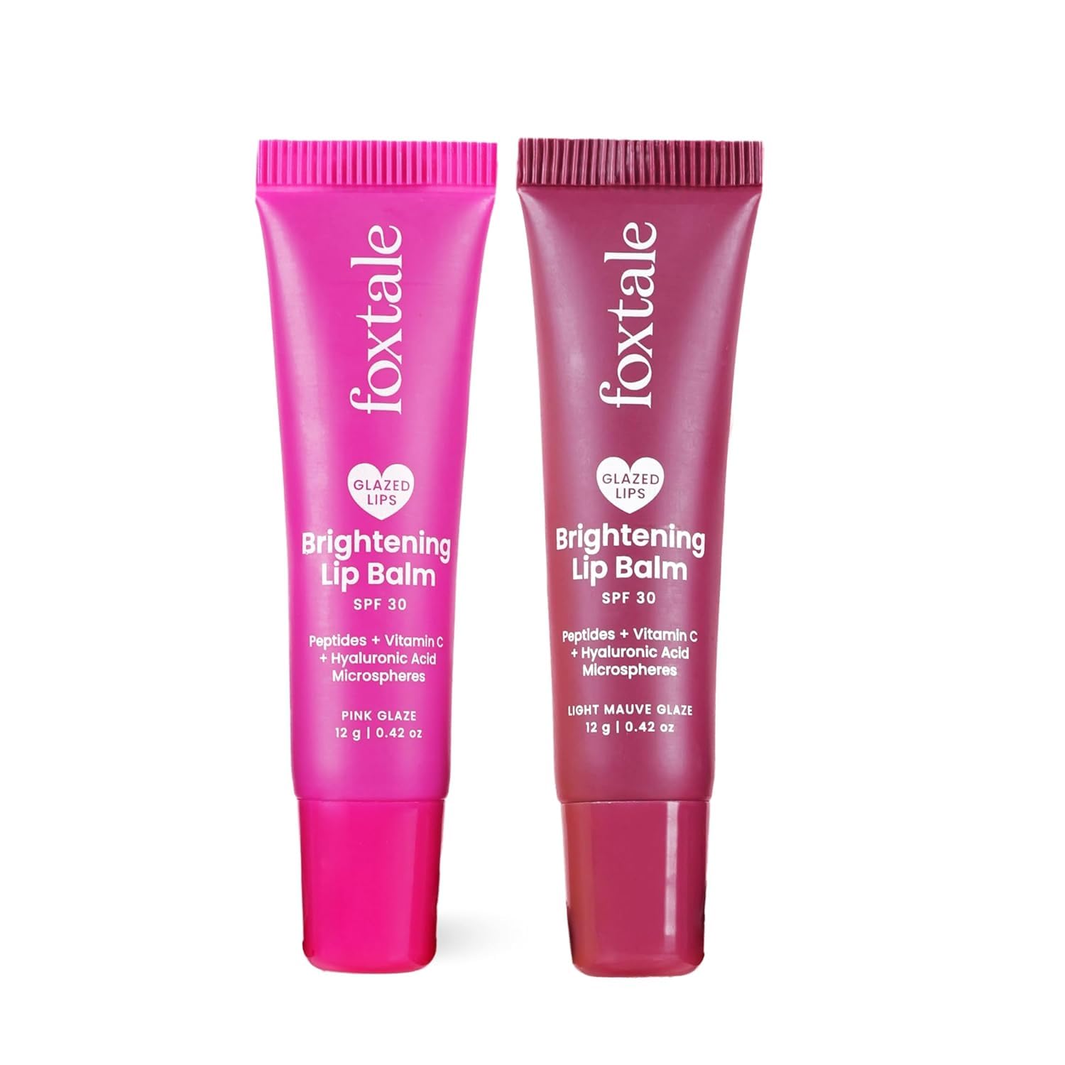 Foxtale SPF 30 Brightening Lip Balm for Dark Lips with Peptides & Vitamin C | Brightens Pigmented Lips | Hydrates Lips | SPF Lip Balm | Pack of 2 | Light Mauve & Pink Glaze 24gm