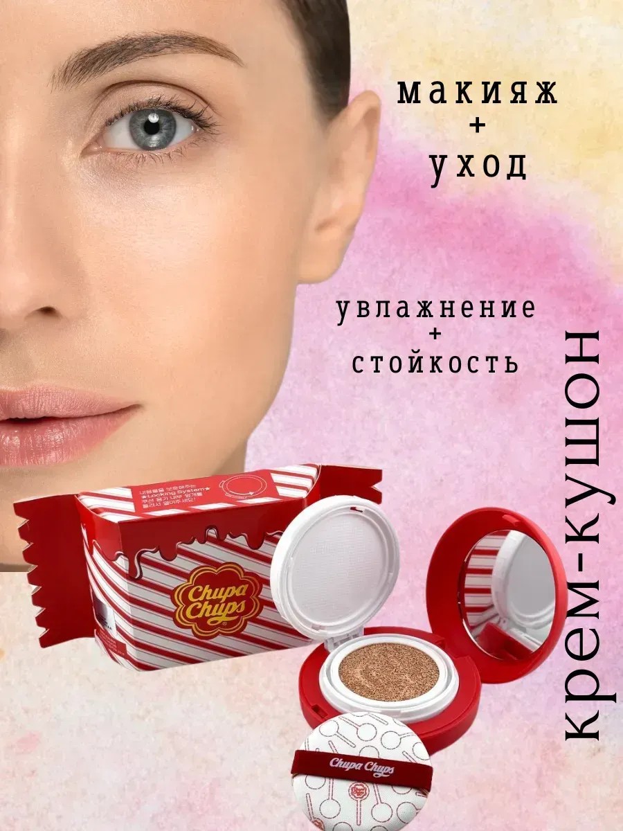Подарите своей коже идеальный тон с **тональным кремом-кушоном Chupa Chups** – настоящая корейская штучка, которая станет фаворитом в вашей косметичке!