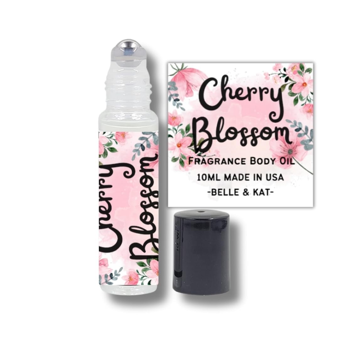 Fragrance Body Oil Roll-On Scented Cherry Blossom - 0.33 Fl Oz (10ml) for Men & Women - 100% Fragrance Oil - No Alcohol Fillers - Can Also Use as Diffuser Oil - Made in USA Cherry Blossom (Fragrance Body Oil Roll-On)