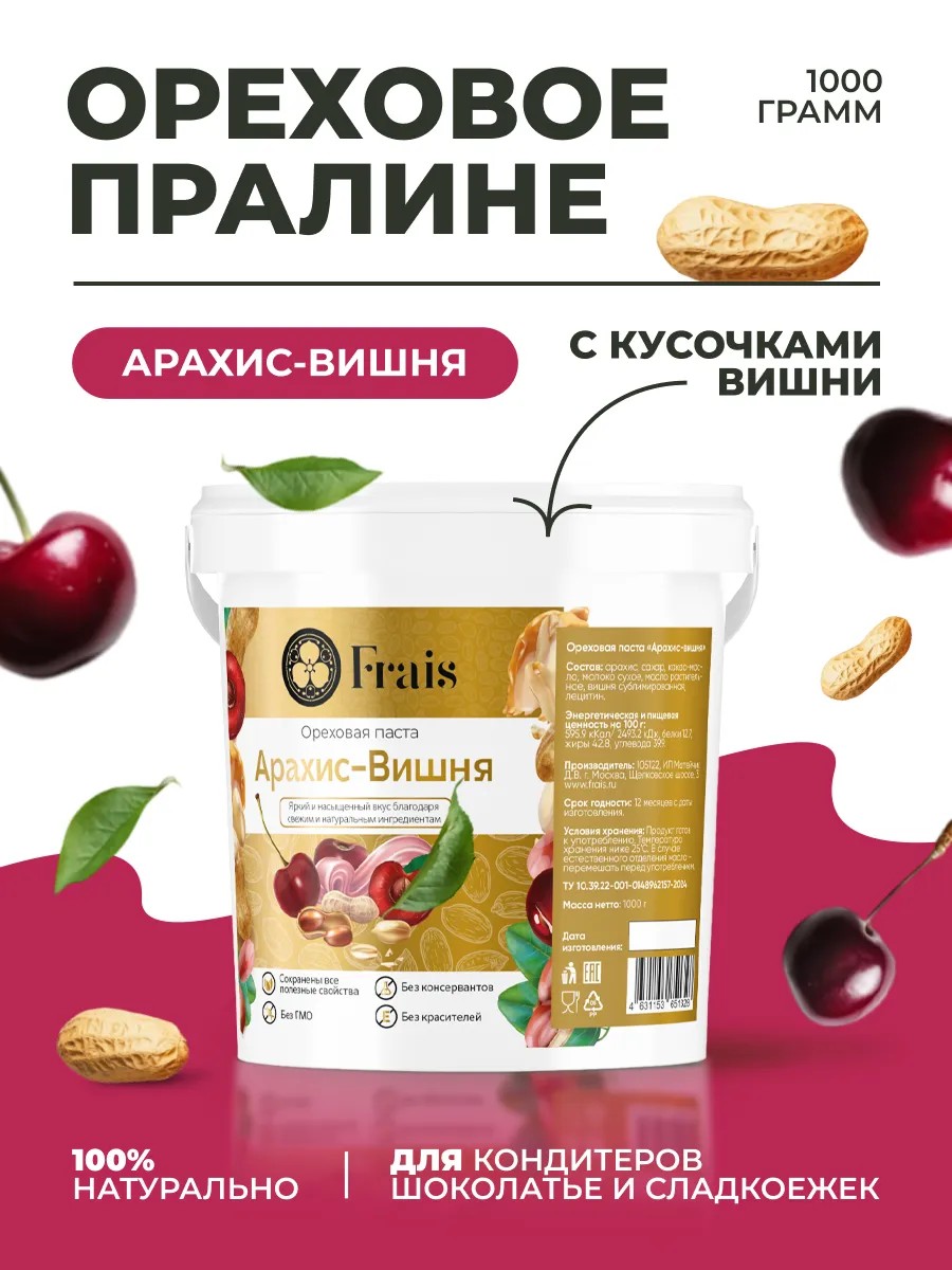 Благодаря собственной рецептуре и использованию тщательно отобранных ингредиентов ореховые пасты Frais принесут пользу для здоровья и станут незаменимым ингредиентом на вашей кухне. Арахисовая паста с добавлением вишни - это не просто продукт ЗОЖ, это питательный подарок для вашего организма. Благодаря низкокалорийности и набору полезных веществ, она идеально подходит для тех, кто следит за своим здоровьем. Попробуйте натуральную ореховую пасту с ягодами вишни и насладитесь ярким и неповторимым вкусом. Нежная и хрустящая текстура оставят вас в восторге. Наш продукт станет отличным дополнением к вашему рациону, поможет придерживаться правильного питания и сохранять хорошее самочувствие. Добавьте в каши, соус, выпечку, десерт, или намажьте на хлеб, чтобы придать блюду новый вкус, текстуру и аромат. ВАЖНО! Возможно естественное отделение масла. Перед употреблением тщательно перемешайте.