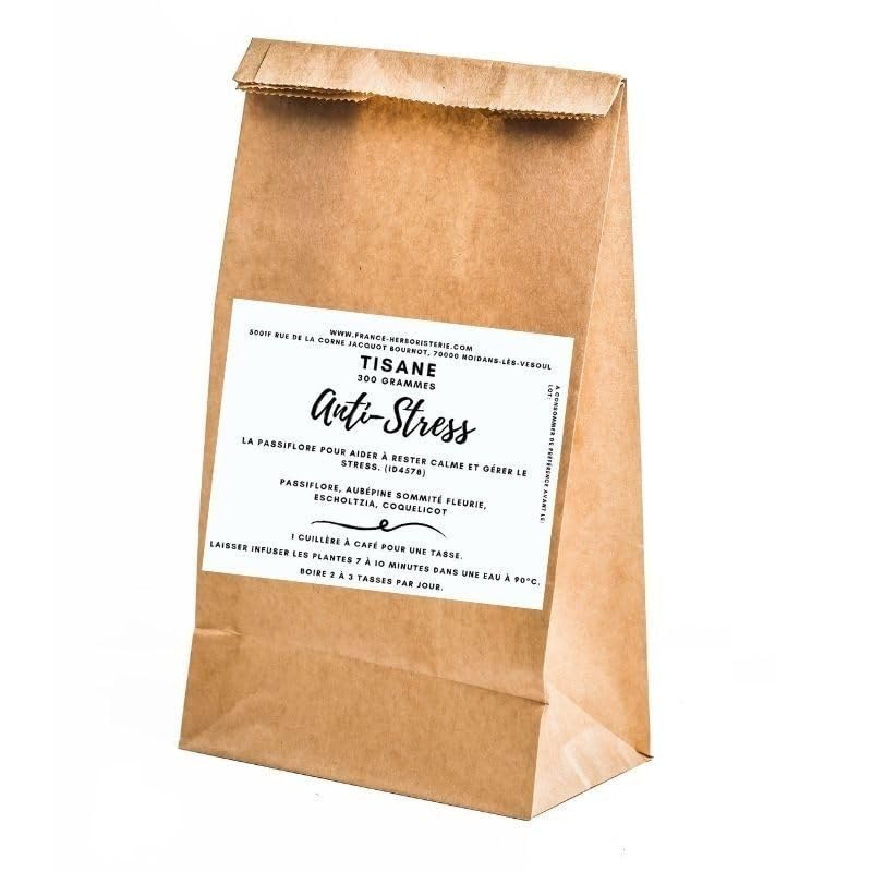 These wellness herbal teas are packaged in windowless kraft paper bags suitable for food contact. France-Herboristerie has been a specialist in herbal medicine for over 25 years. These herbal blends have been sold for decades in our shop located in Noidans-Lès-Vesoul, and our customers are always 100 satisfied. Passionflower-based blend.
