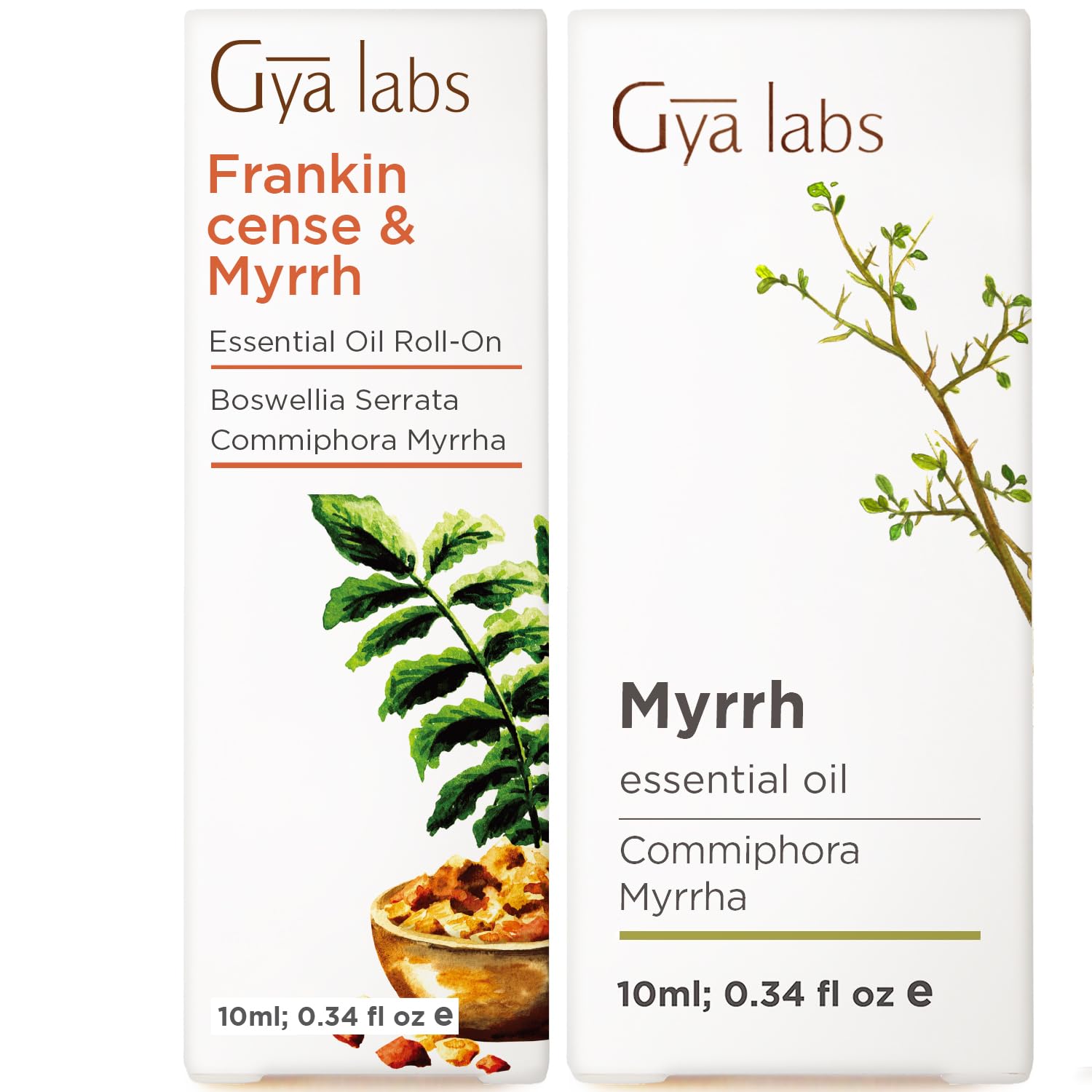 Frankincense Myrrh Roll On & Myrrh Oil for Skin Set - Essential Oils Aromatherapy Roll On with Essential Oil Set - 2x0.34 fl oz - Gya Labs