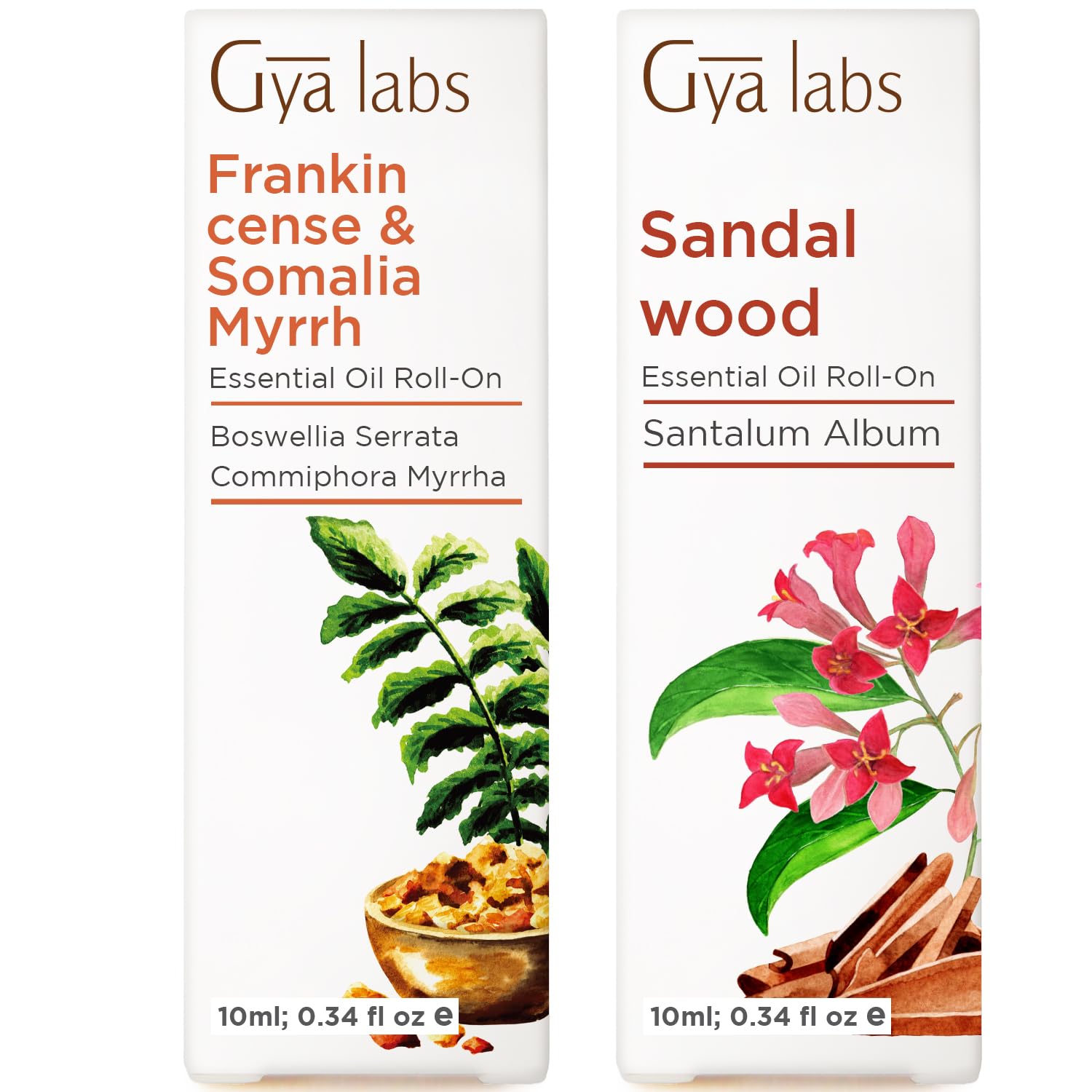 Frankincense Myrrh & Sandalwood Essential Oil Roll On Set - Aromatherapy Grade Essential Oils Set - 2x0.34 fl oz - Gya Labs