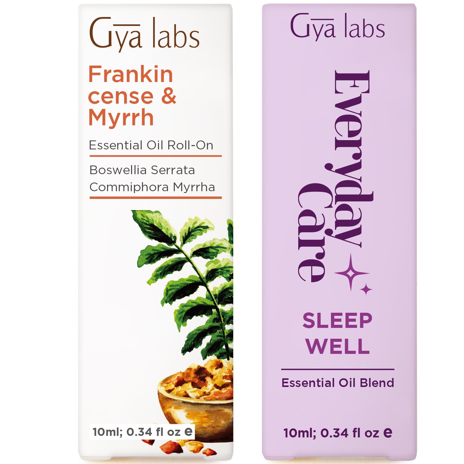 Frankincense Myrrh & Sleep Well Roll On Set - Essential Oils Aromatherapy Roll On with Essential Oil Set - 2x0.34 fl oz - Gya Labs