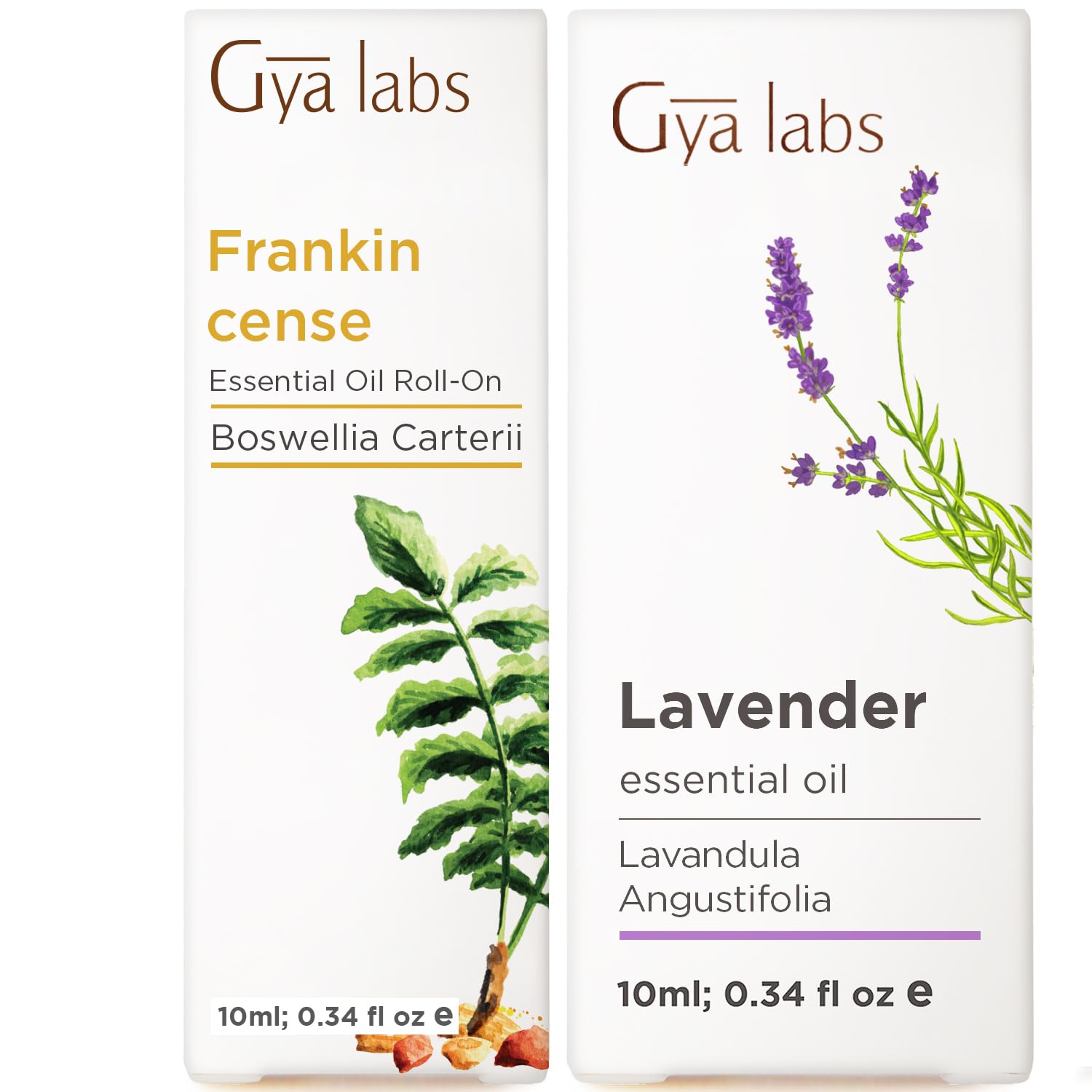 Frankincense Roll On & Lavender Oil Essential Oil for Diffuser Set - Essential Oils Aromatherapy Roll On with Essential Oil Set - 2x0.34 fl oz - Gya Labs