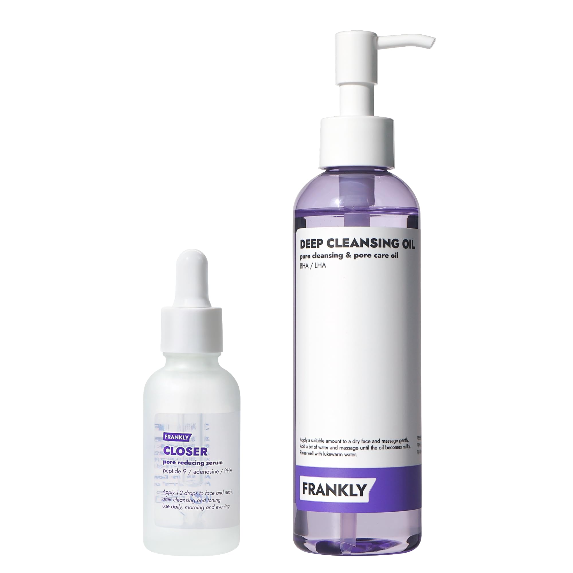 FRANKLY Deep Pore Treatment Duo: Closer Serum & Pore Cleansing Oil | Gifts for Women | BHA/LHA Purifying Cleanser + Peptide Pore Minimizing Serum | Hydrating & Anti-Aging | Korean Skincare Set