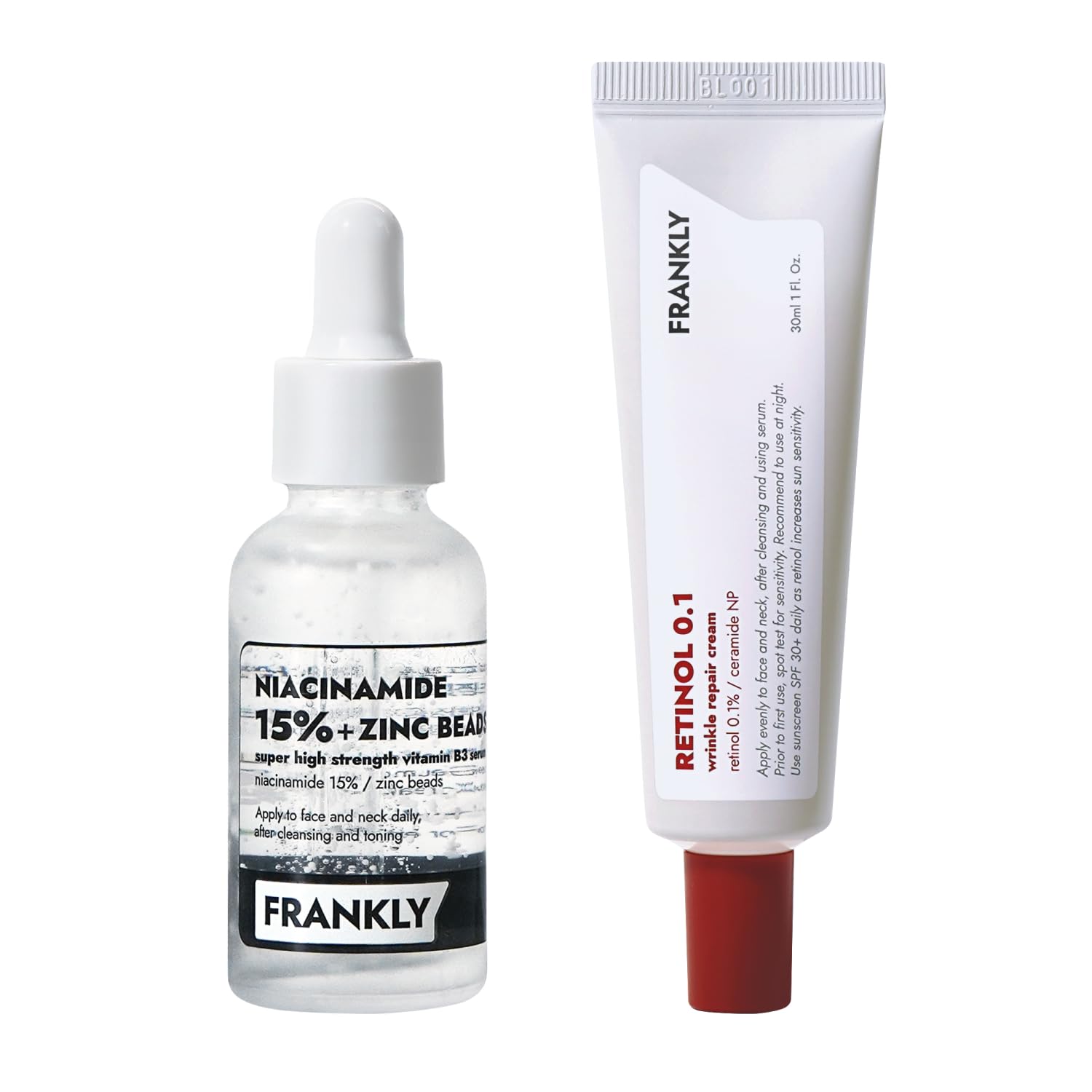 FRANKLY Glow & Renew Duo: Niacinamide 15% & Zinc Beads Serum + Retinol 0.1% Cream | Gifts for Women | Radiance Kit for Oil Control & Anti-Aging | Vegan | Korean Skincare Set | 2 fl.oz.