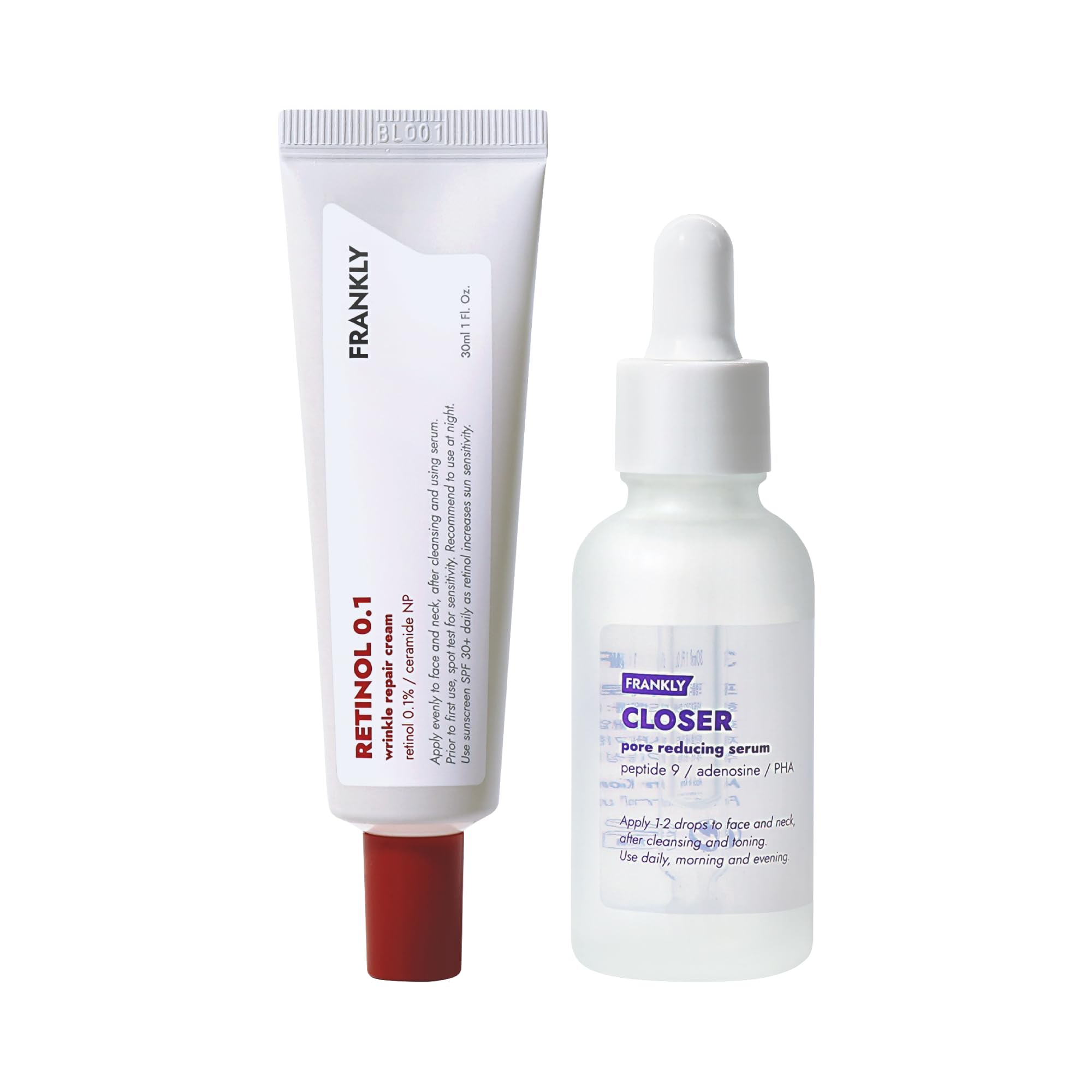 FRANKLY Glowing Skin Duo Retinol 0.1% Cream & Closer Pore Minimizing Serum | PHA Peptide 9 Adenosine | Anti-Wrinkle & Pore Care | Skincare Gifts for Women