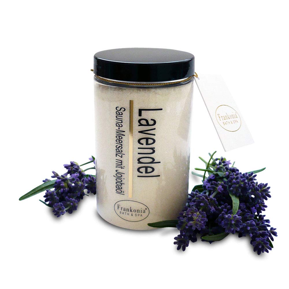 Make your sauna session a noble experience.Rub your skin in front of the sauna session with the delicious fragrant sauna salt.The effect of the sauna is reinforced and sweat formation as well as the blood circulation stimulated.Your skin is gently maintained thanks to the sea salt and the jojoba oil, which are rich in minerals.Of course without dyes!Sauna salt gives the skin what it needs: valuable minerals and natural trace elements.Even more: With the gentle peeling effect, crusty or dead skin cells are removed naturally.Feel comfortable around and perfect your next visit to the sauna.The salt peeling also shows its effect in the hammam or in the steam bath.The sauna sea salt ""lavender"" enchants with the natural scent of the lavender and thus supports the relaxation and relaxation that you want to treat yourself to with saunas.Outside, lavender oil is used in tributaries and bathing additives folk health in the event of tension and exhaustion.The fragrance has a relaxing and calming effect on the psyche.Lavender oil has an antimicrobial effect due to its content of Linalool. Ingredients / ingredients Maris Sal, Simmondsia Chinensis Seed Oil, Parfum, Helianthus Annus Seed Oil, Ascorbyl Palmitate, Lecithin, Tocopherol, Linalool, CouMarin. Instructions Apply the sauna sea salt to the moist, showered or thinly grated skin.As usual, saunas and then shower gently massively and thoroughly. More our range: Pink Grapefruit, Deep Pacific, Mango-Pfirsich, lavender, sandalwood, pomegranate, vanilla, lemongras, honey-almond, wild rose.Fasting effect, maintains the skin and promotes the hemorrhage.The result: a wonderfully soft and bright healthy skin feeling.Haves detoxifying and deep cleaning.Fine grain and intensive smell for a fragrant wellness massage experience.Gentle elimination of skin vendors and dandruff for all skin types, especially for sensitive and dry skin.Quality manufactured in Germany and enriched with high-quality jojoba care oil and vitamin E, rich in valuable minerals.Premium sauna peeling salt with minerals made of pure sea salt.Vegan, untreated and free of preservatives or additives. Machen Sie Ihren Saunagang zu einem edlen Erlebnis. Reiben Sie Ihre Haut vor dem Saunagang mit dem lecker duftenden Saunasalz ein. Die Wirkung des Saunierens wird verstärkt und die Schweißbildung als auch die Durchblutung angeregt. Ihre Haut wird dank der an Mineralien reichhaltigen Meersalze und des Jojobaöls sanft gepflegt. Selbstverständlich ohne Farbstoffe! Saunasalz gibt der Haut, was sie braucht: wertvolle Mineralien und natürliche Spurenelemente. Mehr noch: Mit dem sanften Peeling-Effekt werden verkrustete oder abgestorbene Hautzellen auf natürlichem Wege entfernt. Fühlen Sie sich rund herum wohl und perfektionieren Sie Ihren nächsten Saunabesuch. Auch im Hammam oder im Dampfbad zeigt das Salzpeeling seine Wirkung. Das Sauna-Meersalz ""Lavendel"" verzaubert mit dem natürlichen Duft des Lavendels und unterstützt so die Entspannung und Erholung, die man sich mit dem Saunieren gönnen möchte. Äußerlich wird Lavendelöl in Einreibungen und Badezusätzen volksheilkundlich bei Verspannungen und Erschöpfungszuständen verwendet. Der Duft wirkt entspannend und beruhigend auf die Psyche. Lavendelöl wirkt aufgrund seines Gehaltes an Linalool antimikrobiell. INHALTSSTOFFE / ZUTATEN Maris Sal, Simmondsia Chinensis Seed Oil, Parfum, Helianthus Annus Seed Oil, Ascorbyl Palmitate, Lecithin, Tocopherol, Linalool, Coumarin. GEBRAUCHSANWEISUNG Sauna-Meersalz auf die feuchte, geduschte oder dünn mit Honig eingeriebene Haut auftragen. Wie gewohnt saunieren und danach sanft massierend und gründlich abduschen. MehrUnser Sortiment: Pink Grapefruit, Deep Pacific, Mango-Pfirsich, Lavendel, Sandelholz, Granatapfel, Vanille, Lemongras, Honig-Mandel, Wilde Rose. Rückfettende Wirkung, pflegt die Haut und fördert die Duchblutung. Das Ergebnis: Ein wunderbar weiches und strahlend gesundes Hautgefühl. Wirkt entschlackend und tiefenreinigend. Feine Körnung und intensiver Geruch für ein duftendes Wellness-Massage-Erlebnis. Schonende Beseitigung von Haut-Unreinheiten und Schuppen für alle Hauttypen, vor allem für sensible und trockene Haut. Qualität hergestellt in Deutschland und angereichert mit hochwertigem Jojoba-Pflege-Öl und Vitamin E, reich an wertvollen Mineralien. Premium Sauna-Peeling-Salz mit Mineralstoffen aus reinem Meersalz. Vegan, unbehandelt und frei von Konservierungsstoffen oder Zusatzstoffen.Frankonia BATH & SPA Sauna Salz Peeling – Lavendel 400g - Meersalz m. Jojobaöl Vitamin E Body Scrub – Dusch- und Körperpeeling für alle Hauttypen – vegan – ohne Parabene