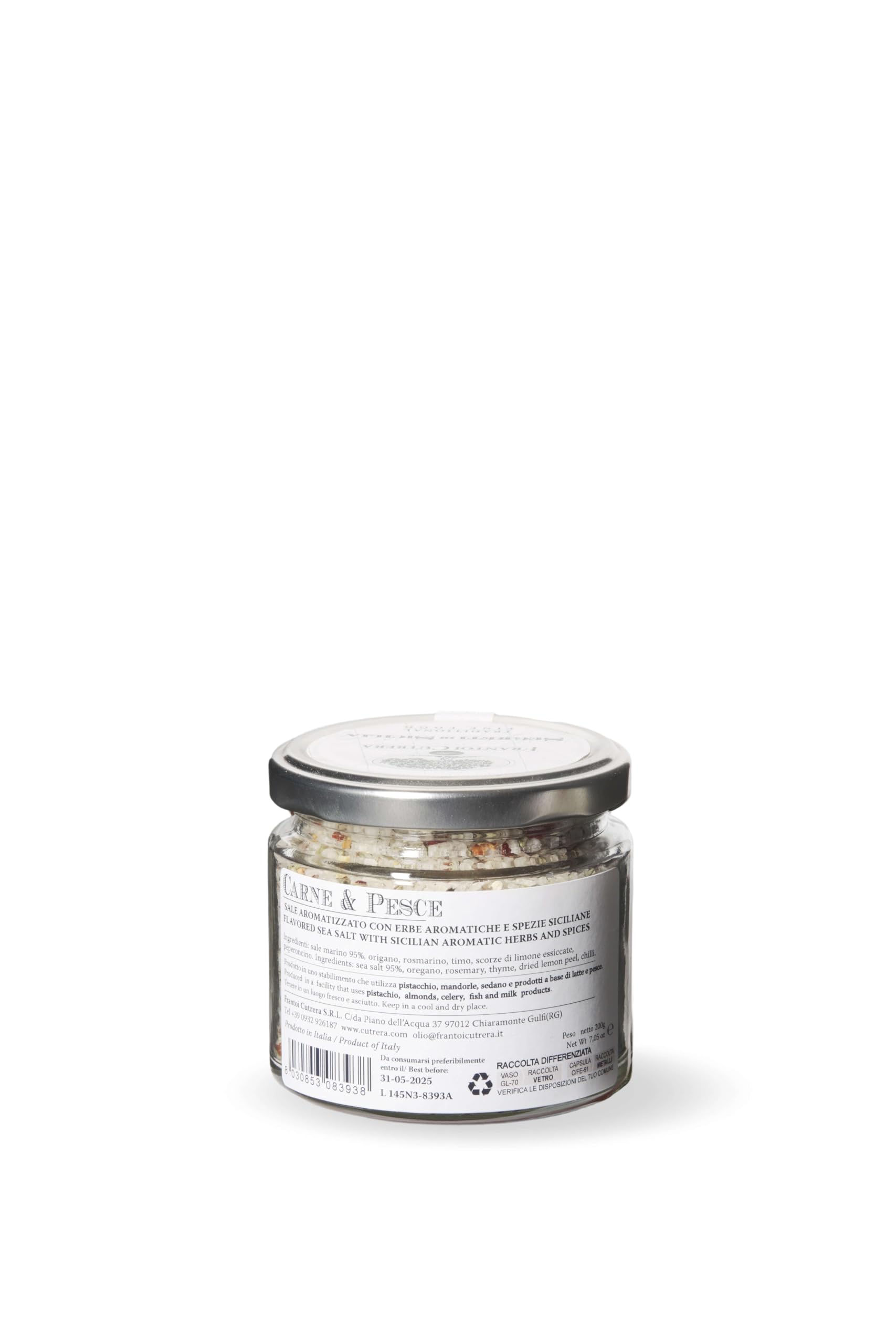 This sea salt (made in Trapani salt pans) is flavored with dried Mediterranean herbs. It has an intense aroma of rosemary and oregano. Excellent for enhancing the flavor of red meat. Important information: Product information published on our website may change for reasons beyond our control. Therefore, there may be differences between the information on our website and the information on the delivered products. We encourage you to always check the product information before use.