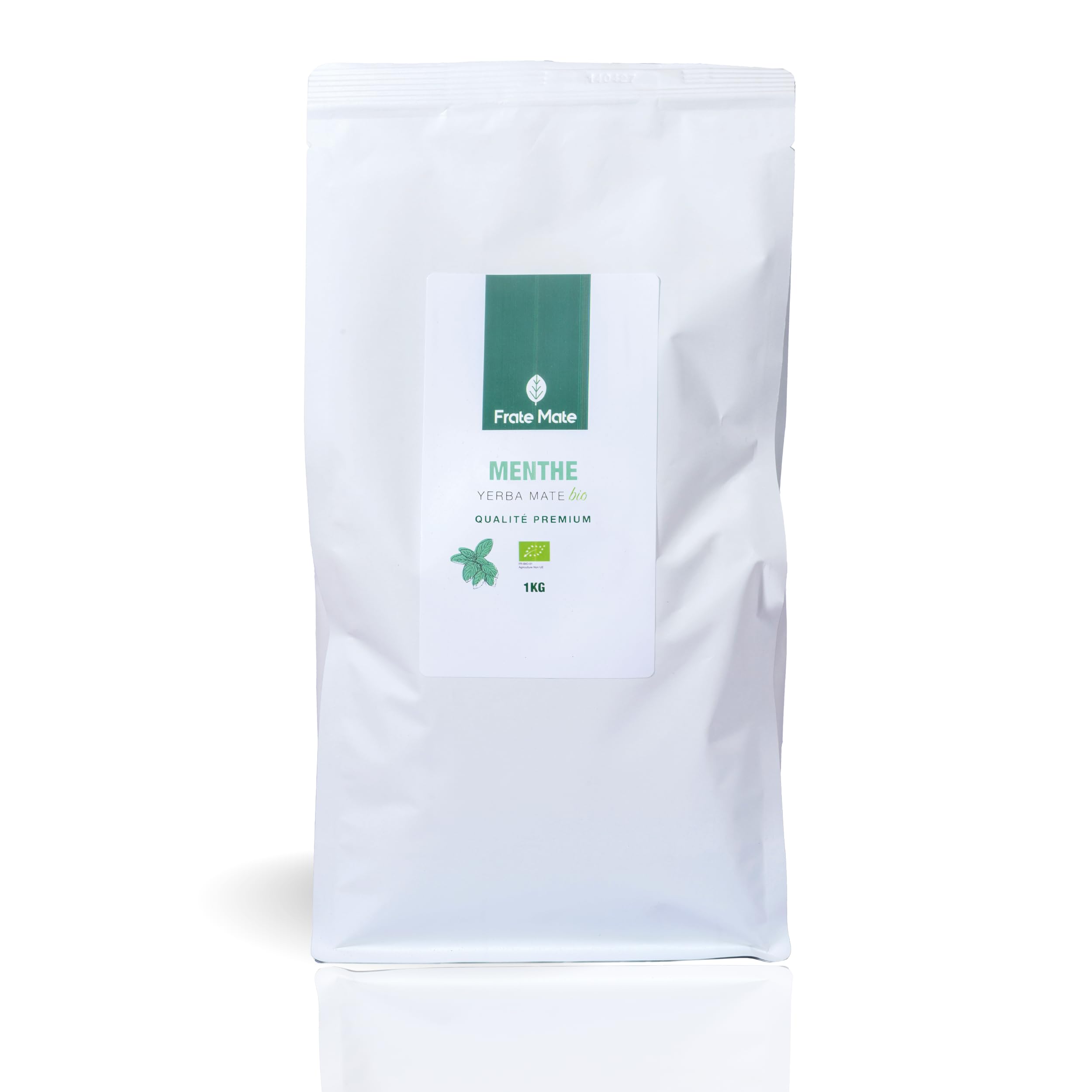 : Discover FRATÉ MATÉ Organic Mint, an exceptional green yerba mate combined with the natural freshness of mint. This unique blend offers an energizing and refreshing infusion, ideal for a revitalizing break at any time of day. A fresh and smooth taste, without bitterness: perfect for beginners and connoisseurs alike. A natural energy boost, combining the gentle caffeine of mate with the antioxidants of tea. Certified organic by Ecocert, this mate is grown in Brazil and packaged in France, in a workshop that promotes the integration of people with disabilities. Dust-free, whole leaves: premium quality for a clear and flavorful infusion. Enjoy traditionally with a gourd and bombilla or simply with a tea ball. Infuse for 5 minutes, savor the moment. Ingredients: Green mate (73.5 ) , Spearmint (24.5 ) , natural mint flavouring . Ingredients from organic farming.Responsive customer service. Easy to prepare: in a traditional gourd or as an infusion with a tea ball. Packaged in France: in a sheltered workshop (ESAT), promoting social inclusion. Premium quality, dust-free: whole leaves for a pure and pleasant infusion. ? Natural energy drink: gentle caffeine antioxidants vitality focus. 100 natural Organic Mint Mate: a taste similar to mint tea, without bitterness.Description du produit Découvrez FRATÉ MATÉ Menthe Bio, une yerba maté verte d'exception, associée à la fraîcheur naturelle de la menthe. Ce mélange unique offre une infusion énergisante et rafraîchissante, idéale pour une pause revitalisante à tout moment de la journée. Un goût frais et doux, sans amertume : parfait pour les débutants comme pour les connaisseurs. Un effet coup de boost naturel, combinant la caféine douce du maté avec les antioxydants du thé. Issu de l'agriculture biologique certifiée Ecocert, ce maté est cultivé au Brésil et conditionné en France, dans un atelier favorisant l'insertion de personnes en situation de handicap. Zéro poussière, feuilles entières : une qualité premium pour une infusion claire et savoureuse. A consommer traditionnellement avec calebasse et bombilla ou simplement avec une boule à thé. Infusez 5 minutes, savourez l'instant. Ingrédients Maté vert (73.5 ) , Menthe douce (24.5 ) , arôme naturel de menthe . Ingrédients issus de l'agriculture biologique.Service client réactif. Facile à préparer : en calebasse traditionnelle ou en infusion avec boule à thé. Conditionné en France : dans un ESAT, favorisant l'inclusion sociale. Qualité premium, 0 poussière : feuilles entières pour une infusion pure et agréable. ? Boisson énergisante naturelle : caféine douce antioxydants vitalité concentration. Maté Menthe Bio 100 naturel : un goût proche du thé à la menthe, sans amertume.FRATÉ MATÉ Yerba Maté Menthe Bio 500G sans Amertume Frais et Mentholé Idéal pour débuter sa journée 0 Poussiere
