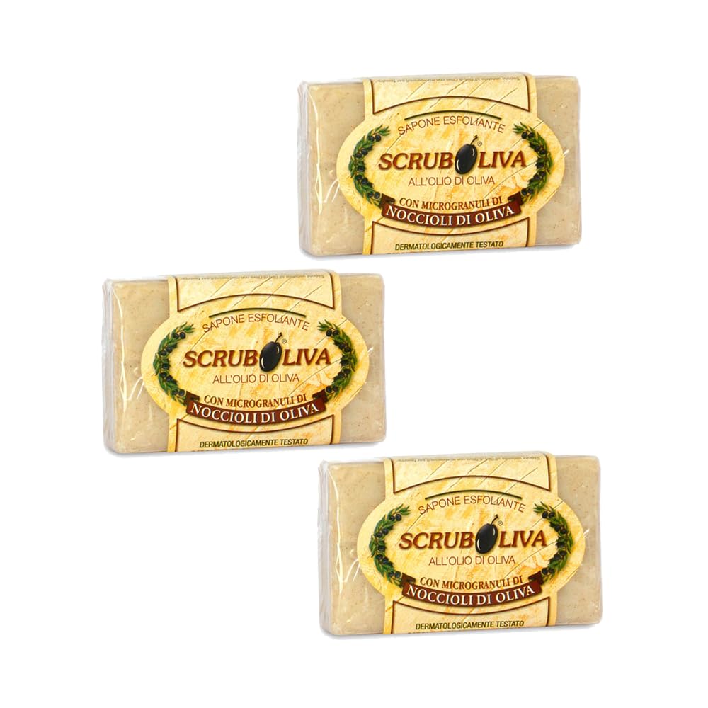Exfoliating and smoothing scrub soap with olive oil and olive kernel microgranules. This 100 plant-based soap is enriched with the unsaponifiable fraction of olive oil, which has a soothing, softening, and sebum-regulating action, revitalizing dry, dehydrated, and devitalized skin. The smoothing scrub effect of the olive kernel microgranules promotes the removal of dead skin cells and impurities with a gentle exfoliating action. It has a normalizing effect on combination or oily skin by absorbing excess sebum. Suitable for the body and face. Scented with a fresh citrus note. SAFETY WARNING All products are clinically tested under dermatological control using alternative methods, without the use of animal testing.Our soaps are hypoallergenic, clinically tested under dermatological control, and made without animal testing. Thanks to our selection of natural raw materials, we guarantee the quality, safety, and environmental responsibility of every product. Since 1946, Saponificio Artigiano F.lli Risso has been producing natural and authentic soaps in Imperia, using highly pure vegetable oils and natural ingredients, enriched with cold-applied fragrances and extracts. Perfect for combination or oily skin, thanks to its normalizing action that absorbs excess sebum. Scented with a fresh citrus note, it is 100 plant-based and gentle on the skin. Enriched with the unsaponifiable fraction of olive oil, it has a soothing, softening, and sebum-regulating action, revitalizing dry, dehydrated, or devitalized skin. Exfoliating olive oil soap with micro-granules of olive kernels, ideal for removing dead skin cells and impurities. Suitable for face and body, leaves skin smooth and regenerated.Savon Exfoliant, Gommage Olive, Savon à l'Huile d'Olive, Savon Naturel, 3 Pièces - 150 grammesDESCRIPTION DU PRODUIT DESCRIPTION DU PRODUIT Savon gommage exfoliant et lissant à l'huile d'olive avec microgranulés de noyaux d'Olive. Savon 100 végétal, enrichi en l'insaponifiable de l'huile d'olive qui joue une action apaisante, adoucissante et séborestitutive en revitalisant les peaux sèches, déshydratées et dévitalisées. L'effet gommage lissant des microgranulés issus des noyaux d'olive favorise l'élimination des cellules mortes et des impuretés de la peau avec une action exfoliante délicate. Il exerce une action normalisante pour les peaux mixtes ou grasses, en absorbant l'excès de sébum. Convient pour le corps et le visage. Parfumé avec une note d'agrumes fraîche. AVERTISSEMENT DE SÉCURITÉ Tous les produits sont cliniquement testés sous contrôle dermatologique avec des méthodes alternatives, sans avoir recours à l'expérimentation animale.Nos savons sont hypoallergéniques, cliniquement testés sous contrôle dermatologique et fabriqués sans expérimentation animale. Grâce à la sélection de matières premières naturelles, nous garantissons qualité, sécurité et respect de l'environnement de chaque produit. Depuis 1946, le Saponificio Artigiano F.lli Risso produit des savons naturels et authentiques à Imperia, en utilisant des huiles végétales très pures et des ingrédients naturels, enrichis en parfums et extraits ajoutés à froid. Parfait pour les peaux mixtes ou grasses, grâce à l'action normalisante qui absorbe l'excès de sébum. Parfumé avec une note d'agrumes fraîche, il est 100 végétal et doux pour la peau. Enrichi en l'insaponifiable de l'huile d'Olive, il joue une action apaisante, adoucissante et séborestitive, en revitalisant les peaux sèches, déshydratées ou dévitalisées. Savon exfoliant à l'huile d'olive avec microgranulés de noyaux d'Olive, idéal pour éliminer les cellules mortes et les impuretés. Convient pour le visage et le corps, laisse la peau lisse et régénérée.