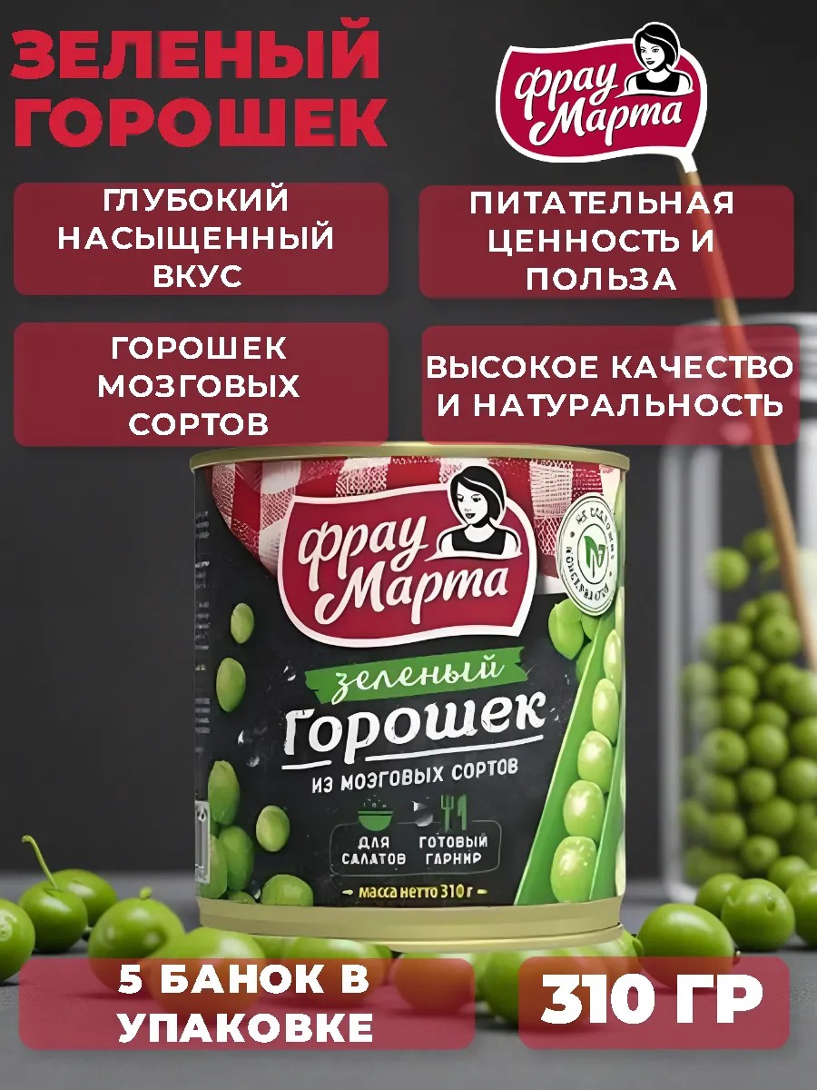 Фрау Марта Горошек зеленый ГОСТ 310г 5 банок
