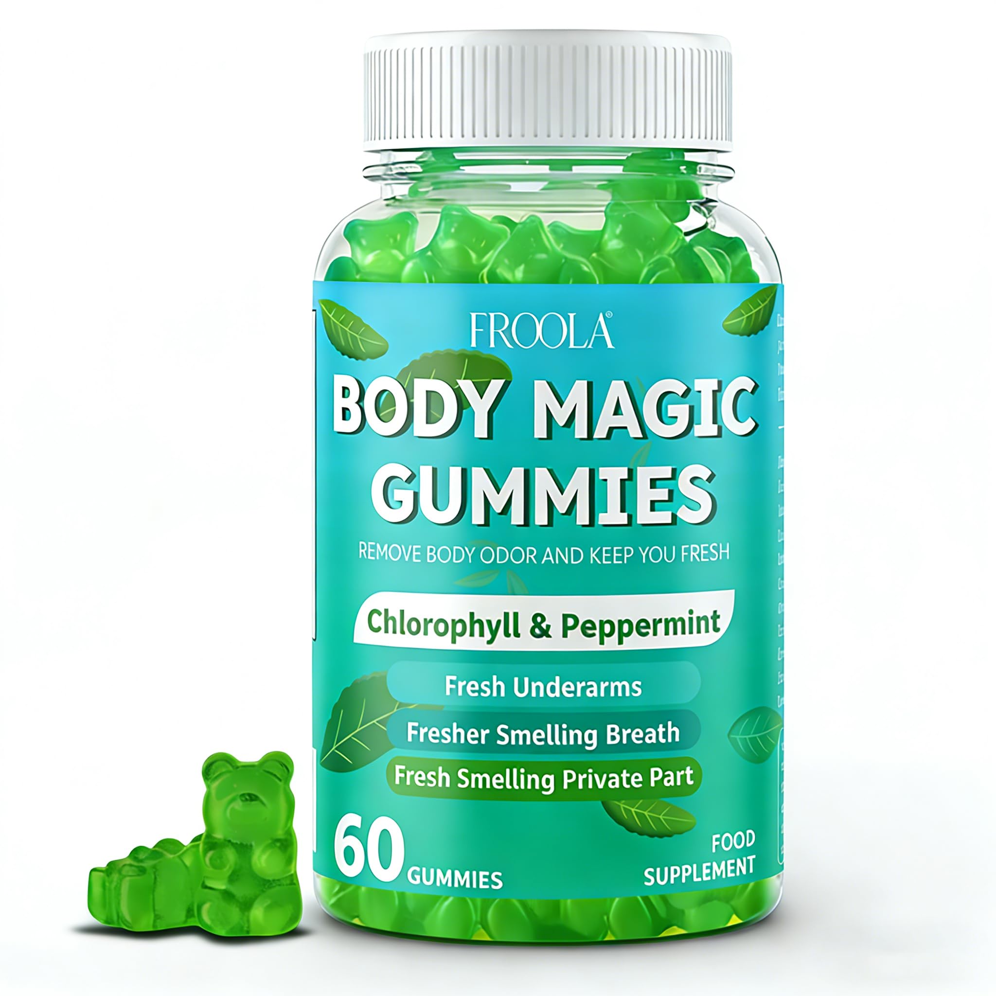 Frcola Body Magic Gummies Chlorophyll Supplement with Peppermint & Chlorella - 60 Gummies Lychee Flavor Plant-Based Pectin Supports Overall Wellness & Freshness