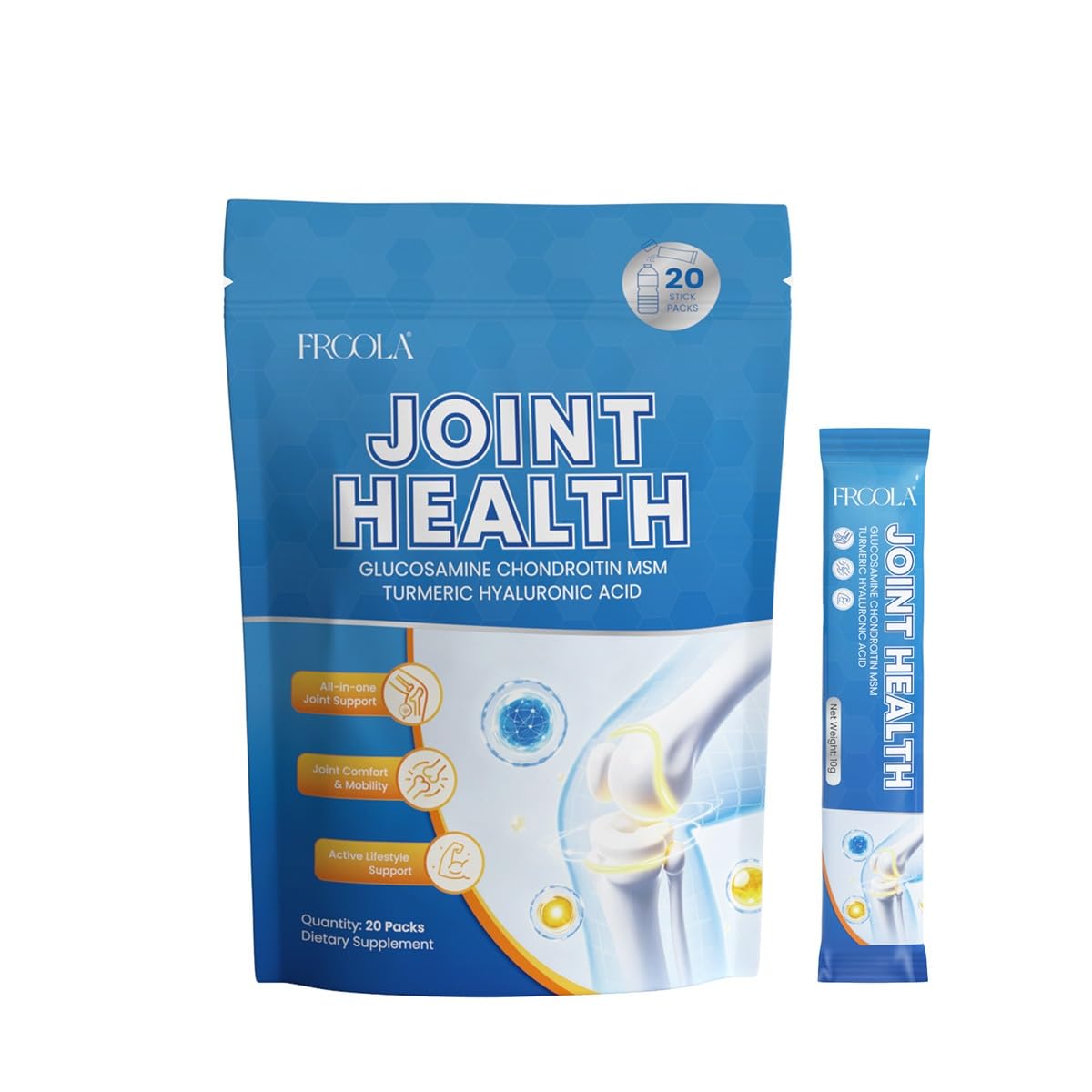 Frcola Joint Support Supplement Glucosamine Chondroitin MSM with Hyaluronic Acid & Herbal Extracts | Joint Support Powder Drink for Joint Comfort & Mobility | Mixed Berry Flavor | 20 Stick Packs