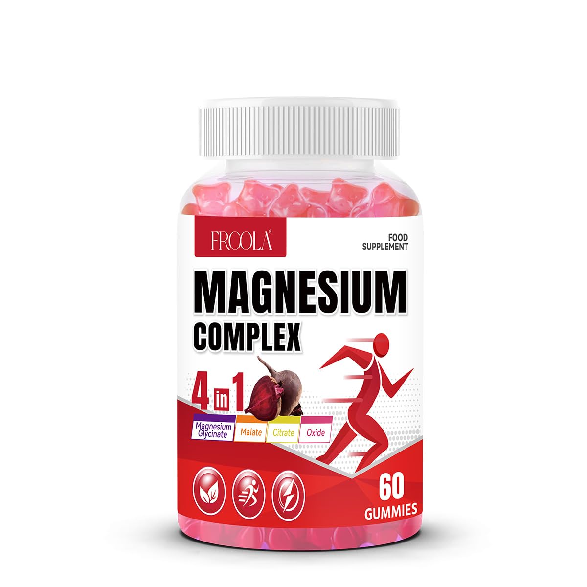 Delicious Convenient Gummy Format: Say goodbye to hard-to-swallow pills. Our strawberry-flavor magnesium gummies offer a tasty and enjoyable way to get your daily dose of essential minerals. Perfect for adults and easy to incorporate into your routine. Ideal Magnesium Complex for Women Men: Formulated to meet the nutritional needs of both women and men, this supplement helps replenish magnesium levels, which are vital for managing a busy lifestyle, supporting stress response, and maintaining overall balance. Pure Carefully Crafted Formula: Frcola Magnesium Gummies are made with pectin (plant-based), contain no gelatin, and are free from gluten, soy, and dairy. We are committed to using high-quality, non-GMO ingredients where possible. Enhanced with Premium Ingredients: Our formula is boosted with 100mg Beetroot, 10mg Zinc, and 400 IU Vitamin D3. These additions work synergistically with the magnesium complex to support overall wellness, energy metabolism, and immune function. Promotes Muscle Bone Health: Magnesium is essential for proper muscle function and recovery, helping to reduce occasional cramps. Combined with Vitamin D3 and Zinc, it further supports the maintenance of strong and healthy bones. Supports Relaxation Restful Sleep: This magnesium supplement, particularly with Magnesium Glycinate, plays a key role in nervous system function, helping to calm the mind, ease muscle tension, and promote a more restful state, without the use of melatonin. Comprehensive Magnesium Complex Formula: Each serving delivers 400mg of premium magnesium from multiple highly bioavailable sources - Magnesium Glycinate, Magnesium Citrate, Magnesium Malate, and Magnesium Oxide. This blend is designed for optimal absorption and efficacy.