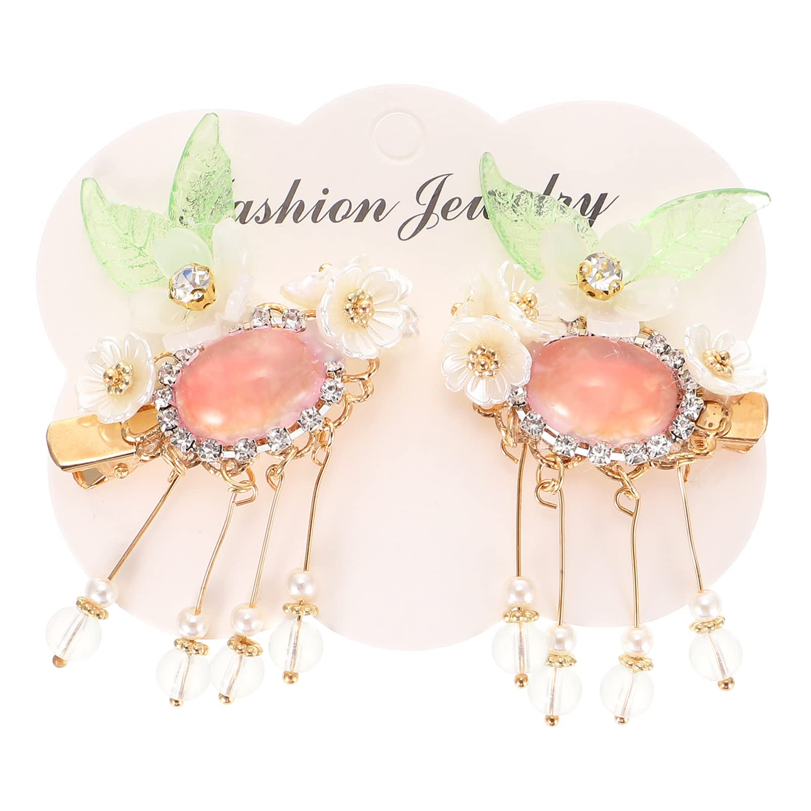 FRCOLOR 1 Pair Pearl Tassel Hair Clip Chinese Hair Clip Hair Accessories for Women Wedding Flower Gem Hair Clamp Barrettes for Women Flower Hair Clip Hairpin Resin Bride Chinese Style